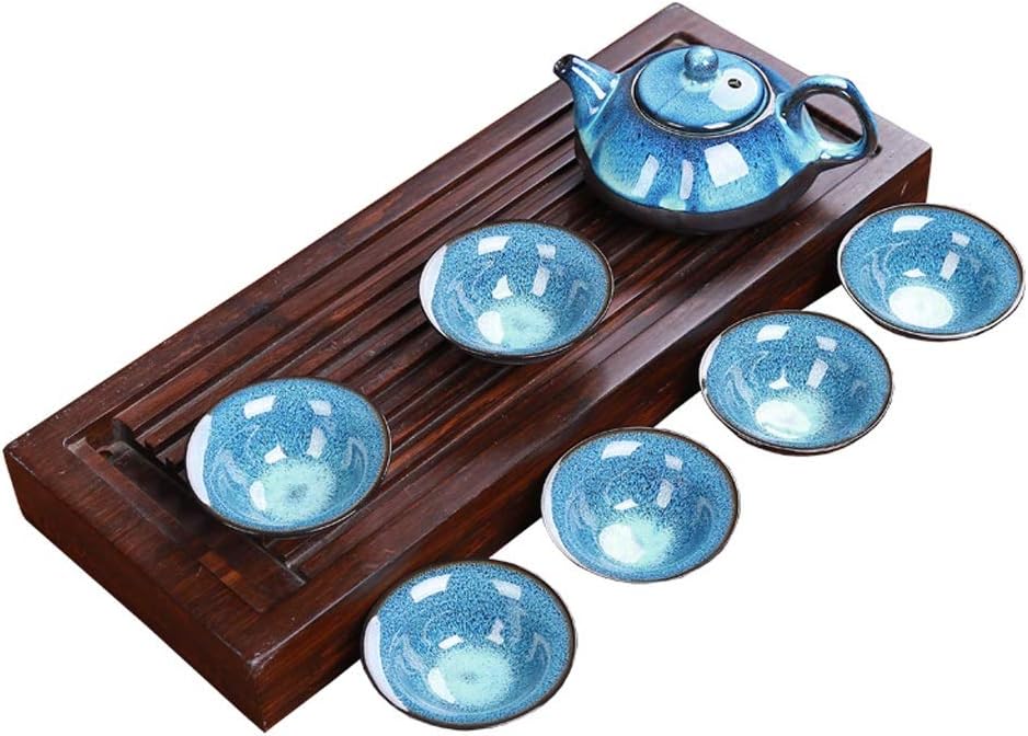 Porcelain Kung Fu Tea Set Tenmoku Fish Fun Tea Cup Ore Zisha Teapot Set 1 Teapot + 6 Cups