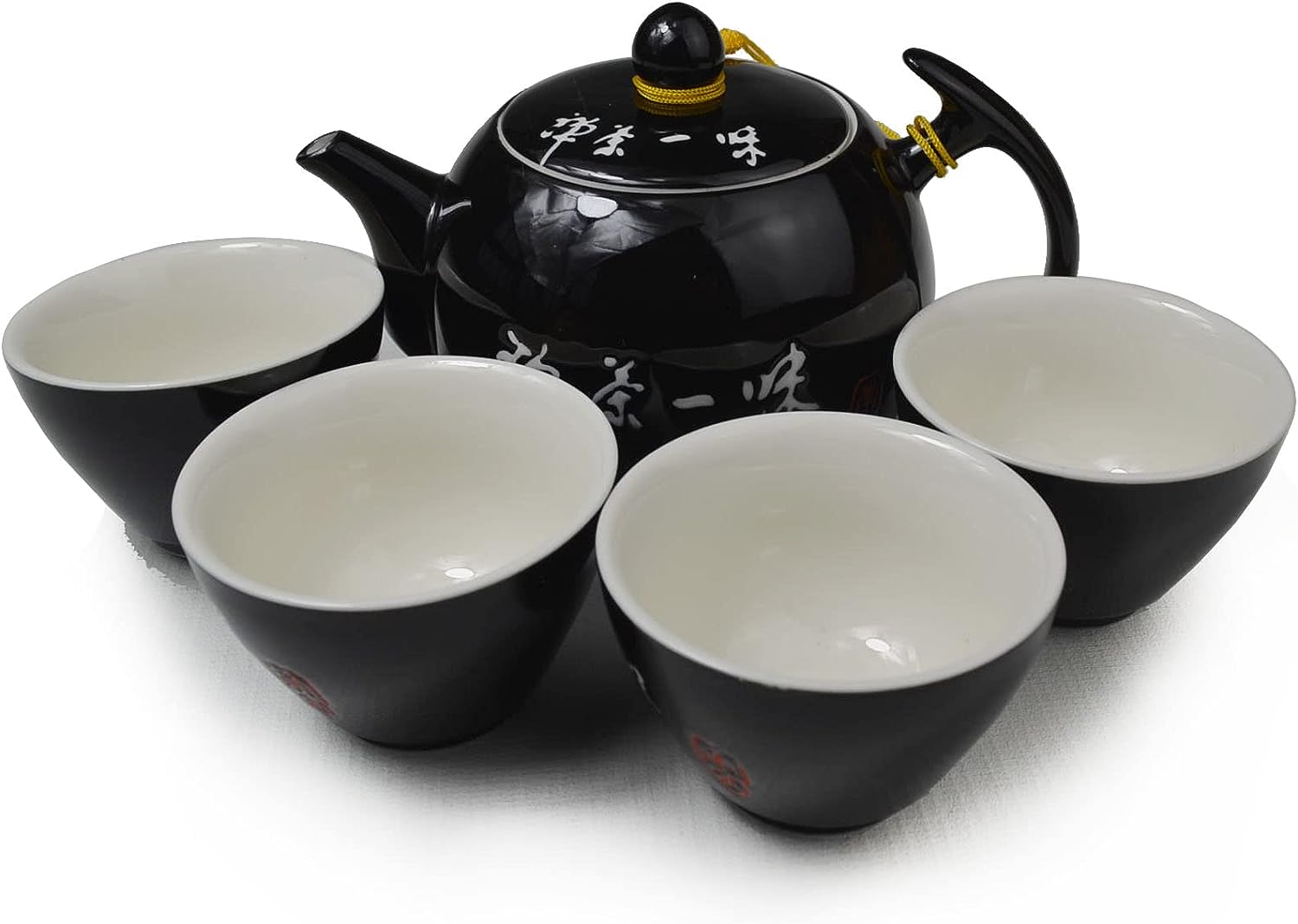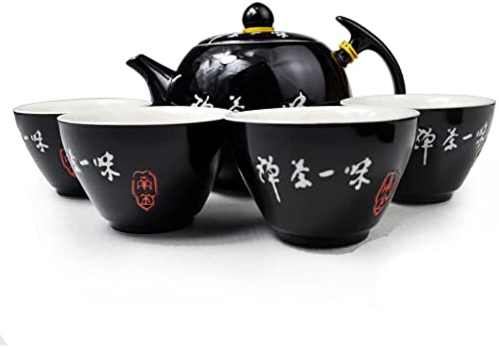 Porcelain Teapot 4 Teacups, 10oz Tea Pot with 4 Small Cups Ceramic Kettle Tea set Black (Teapot+4 teacups)