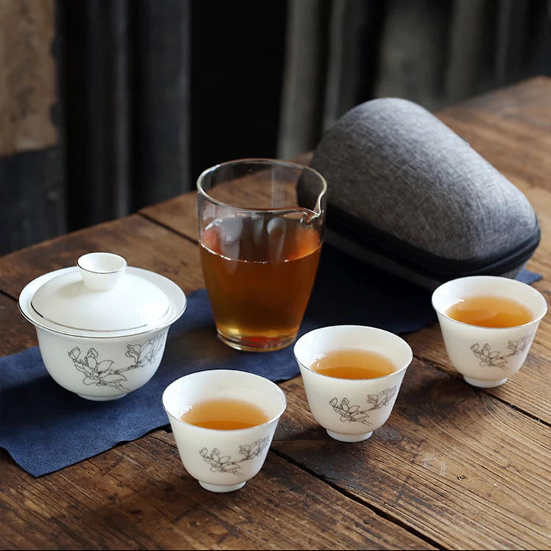 Outdoor Chinese Kung Fu Travel Tea Set Ceramic Portable Teacup Porcelain Service Gaiwan Tea Cups Mug of Tea Ceremony Teapot