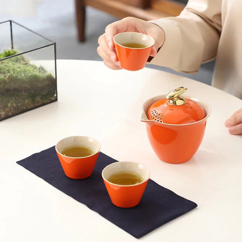 Chinese Kung Fu Tea Set Ceramic Portable Teapot Set Outdoor Travel Gaiwan Tea Cups of Tea Ceremony Household Teacup Fine Gifts