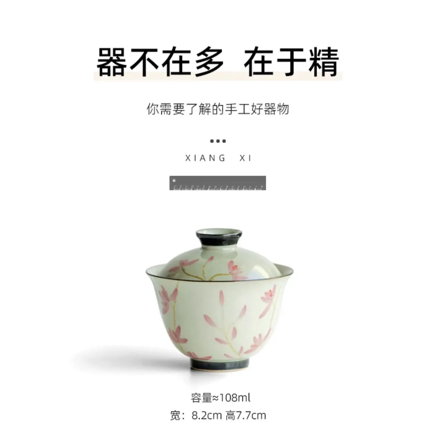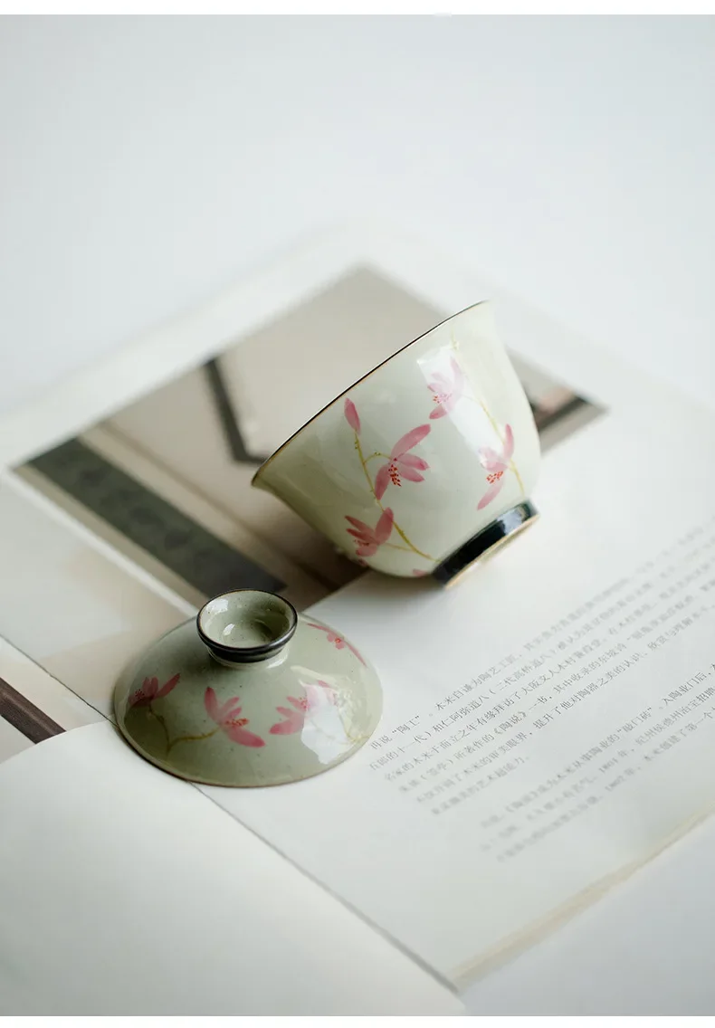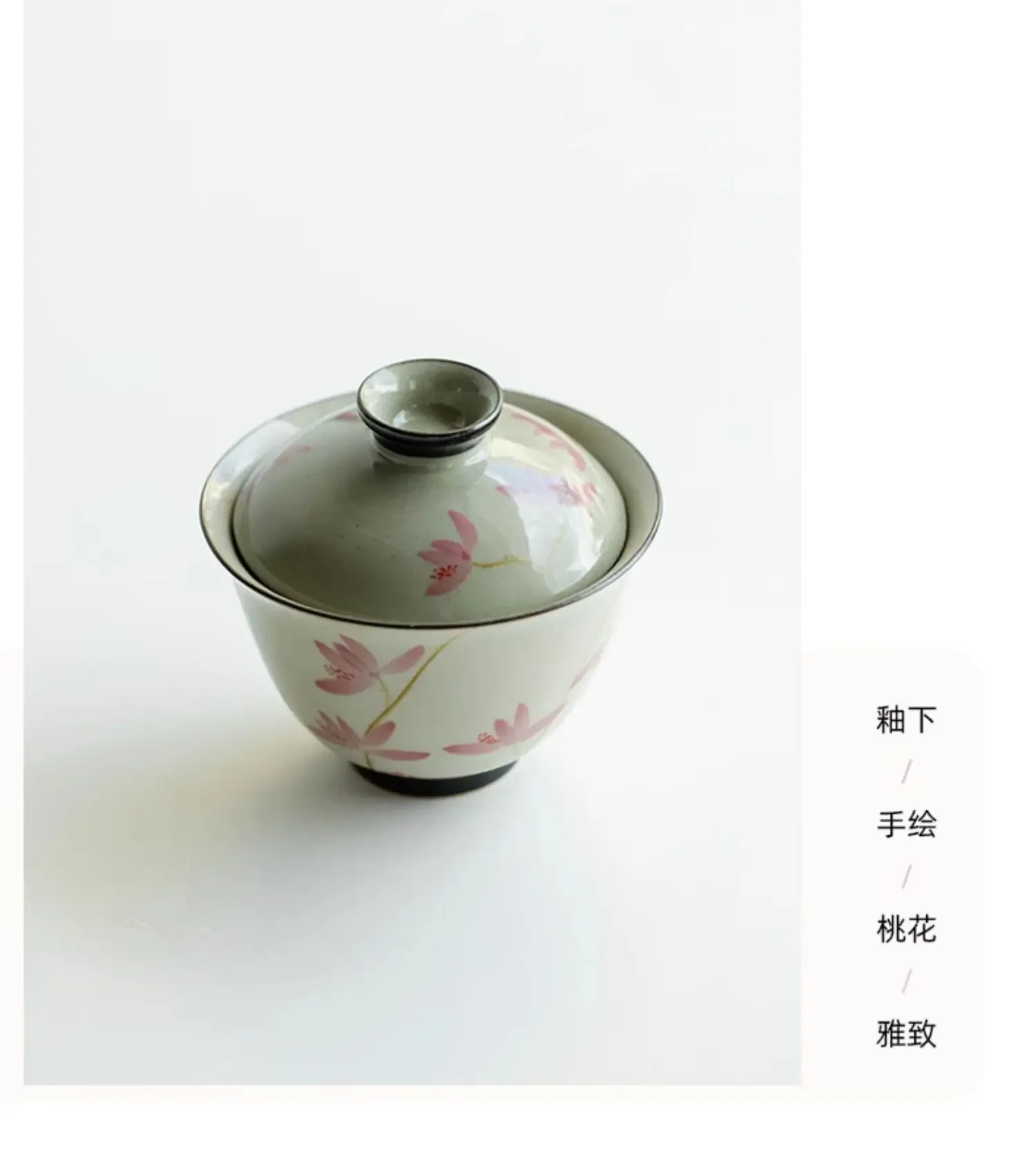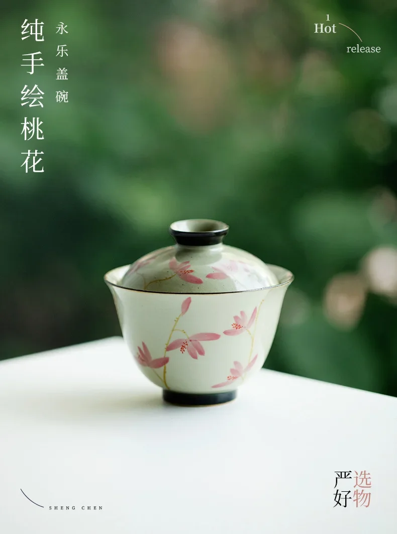108ml Pure Hand-painted Peach Blossom Gaiwan Luxury Tea Brewing Cup Hand Grasping Bowl Tea Tureen Tea Maker Cover Bowl Teaware
