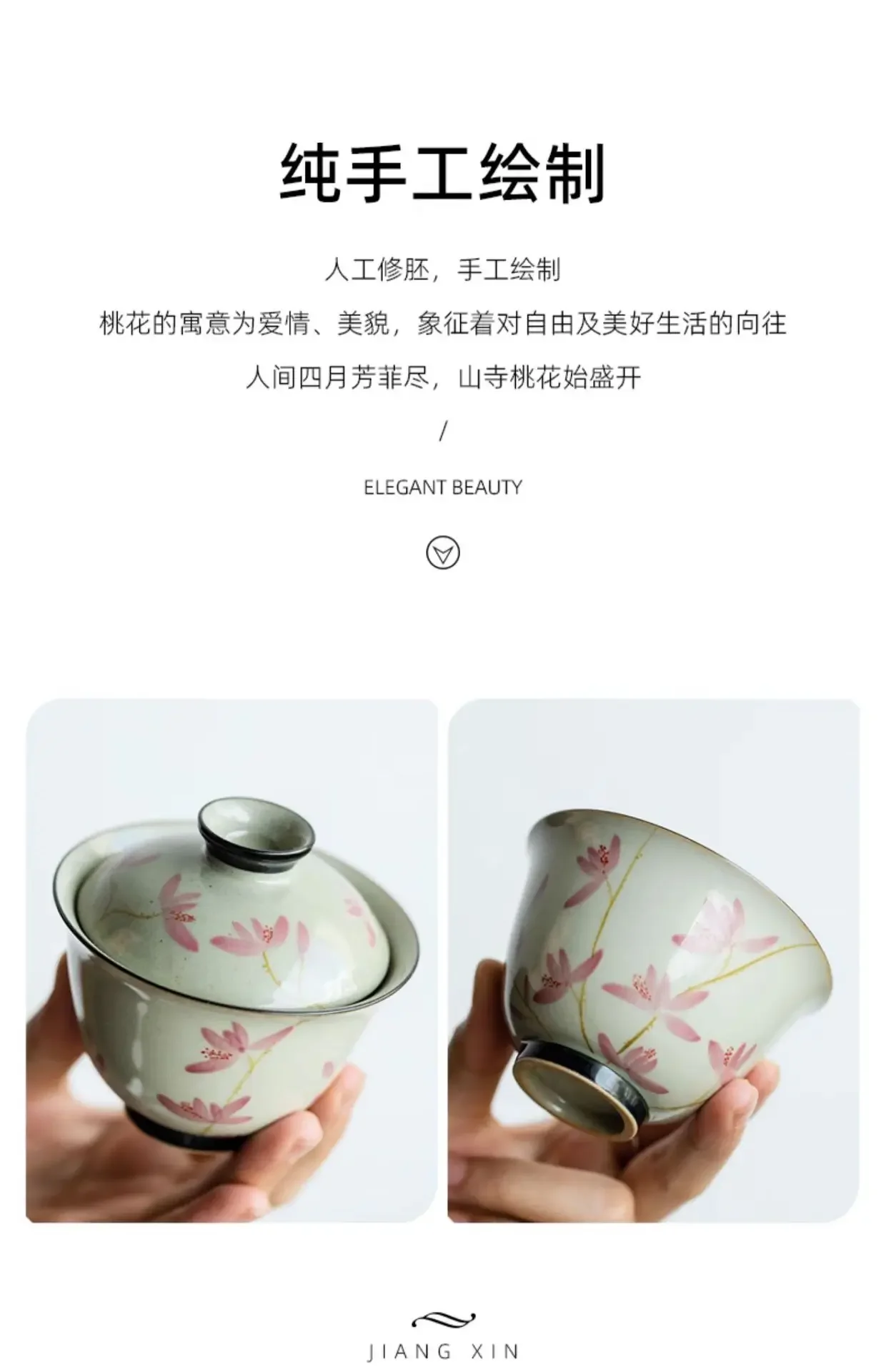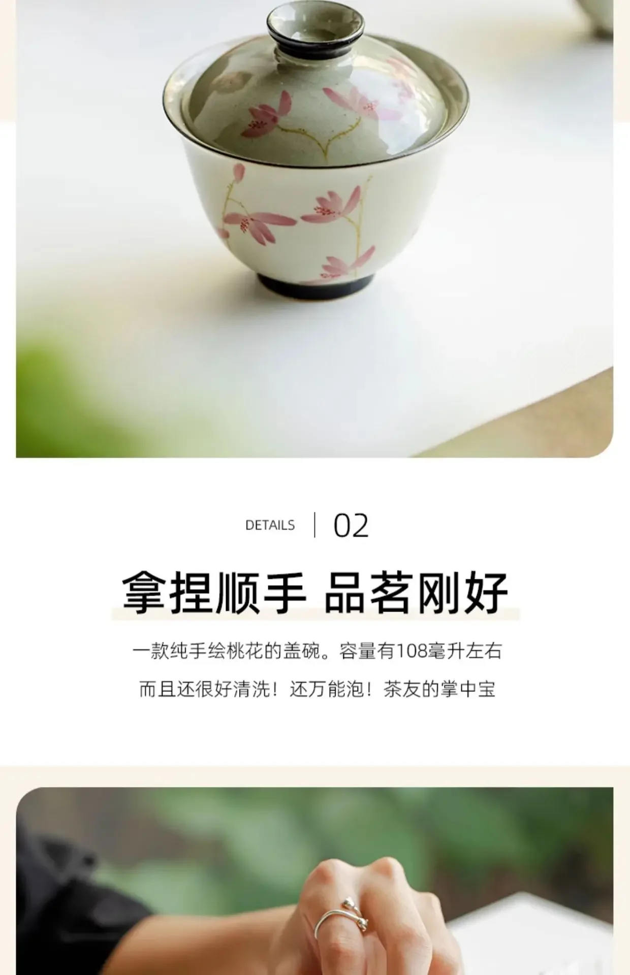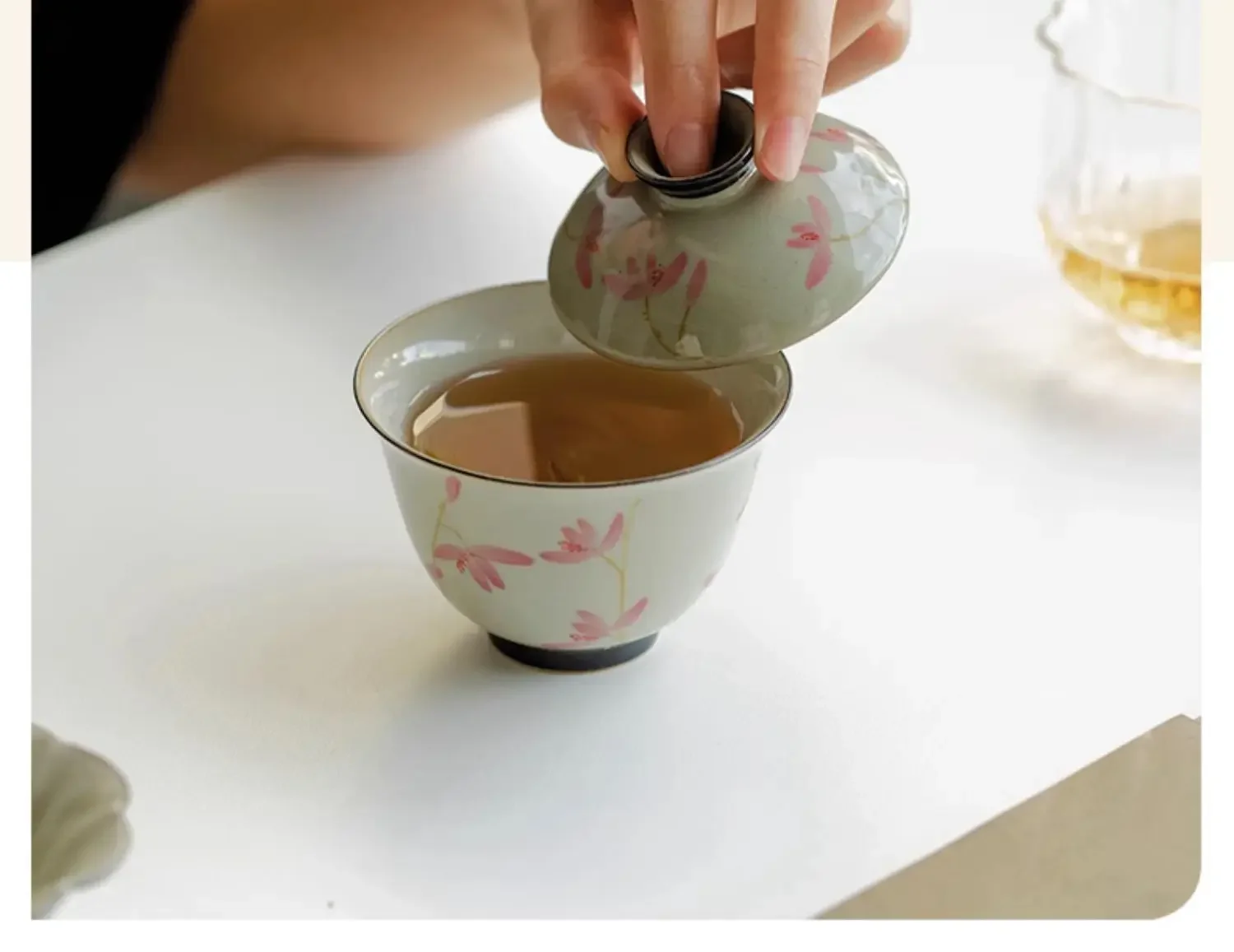 108ml Pure Hand-painted Peach Blossom Gaiwan Luxury Tea Brewing Cup Hand Grasping Bowl Tea Tureen Tea Maker Cover Bowl Teaware