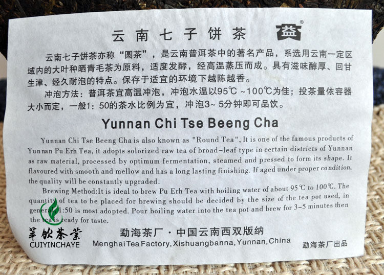 Tea Type: Puer Raw tea Net weight: 357g/pc, Price for one pcs. Production Date: 2007,701 batch Origin: Menghai,Yunnan,China Manufacturer: Menghai Tea factory,TAETEA Group.