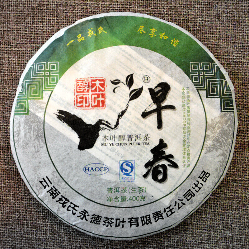 Product name: MENGKU Brand Mu Ye Chun Pu'er Tea Early Spring Pu-erh Tea Cake 2011 400g Raw Puer type: Raw puer Tea Production date: 2011 year Net weight: 400g/Pcs Origin: Yunnan, China Storage: Clean, airy, dry, avoid direct sunlight, no pollution, no srange smell Manufacturer: Yunnan Mengku Rongshi Yongde Tea Industry Co,. Ltd. Tea Material: Shaiqinmao tea leaves of Yunnan big leaves species ( Without any additive)