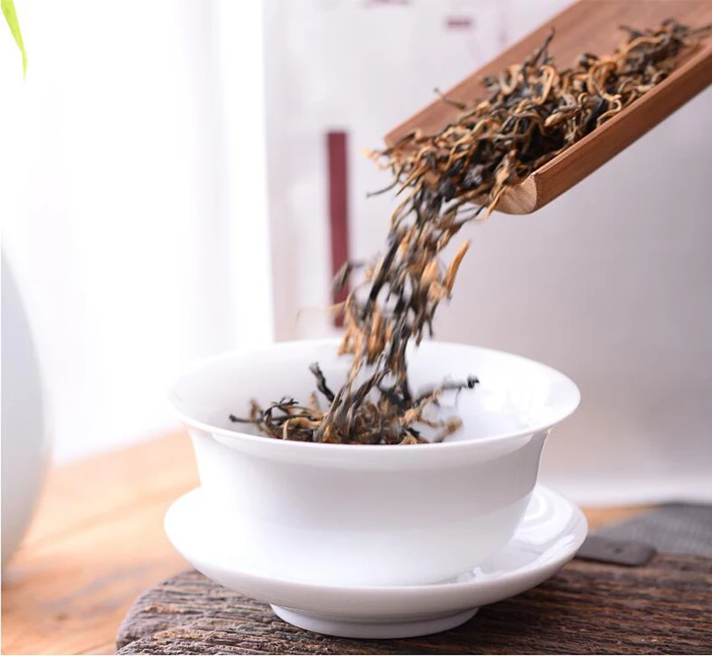 Tea Bush: Yunnan big leaves species Ingredients: Natural Tea Leaves. No pesticides. No preservatives No artificial flavors. High in Antioxidants. Packing specification: 500g / Pc Storage: avoid sunlight, ventilation places Product date: 2023 Year. Shelf time: 36 months Aroma: Its pure and rich fragrance Liquor: Bright and clear red in color Taste: Silky and warm mouth feel, sweet aftertaste lingers on the palate Dian Hong black tea, also known as Yunnan black tea, is one of China's most famous black teas. This Golden Tip Dian Hong has lots of orange pekoe in the dried tea, and brews into an absolutely great rich taste and aroma. This hand picked and produced tea is made from buds and leaves of the Yunnan larger leaf variety of the tea trees. After picking it is meticulously processed by hand using the traditional "Gongfu" processing techniques, and then fully oxidised (fermented). |