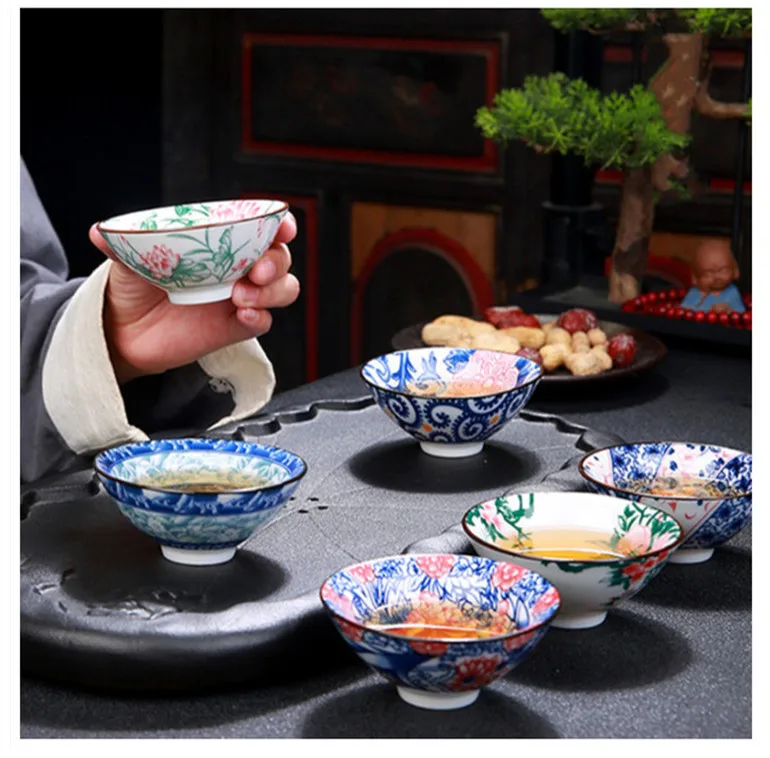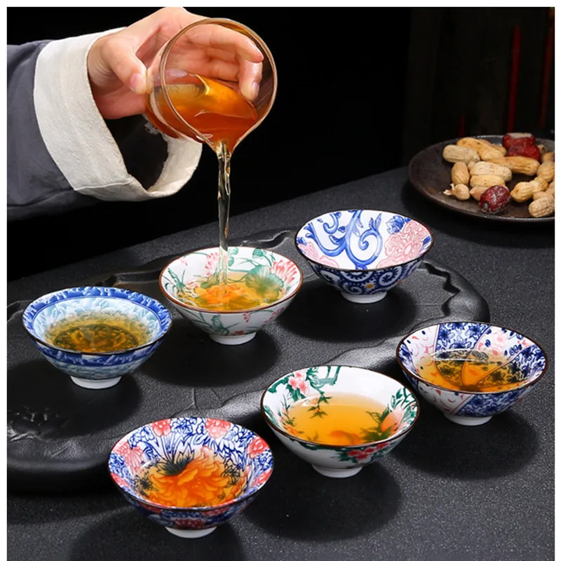 2Pcs Chinese Blue and White Porcelain Cone Teacup Hand-Painted Ceramic Tea Bowl Travel Portable Tea Set Supplies Tea Cup 70ml