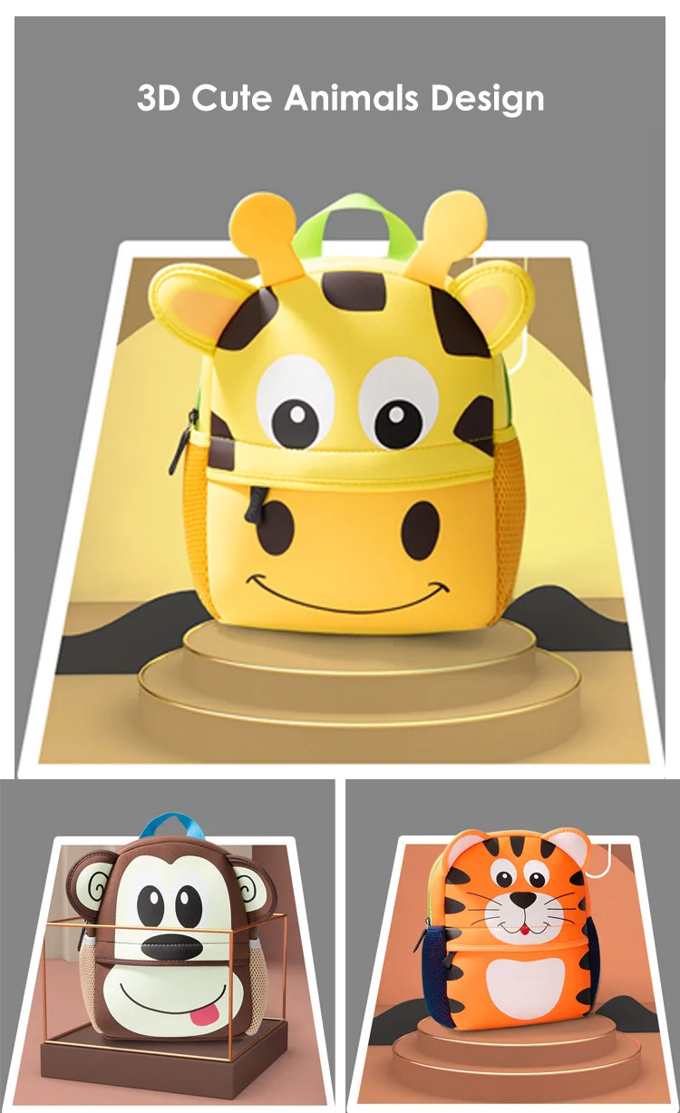 Cute Kids Toddler School Bags 3D Cartoon Backpack Neoprene Kindergarten Schoolbag