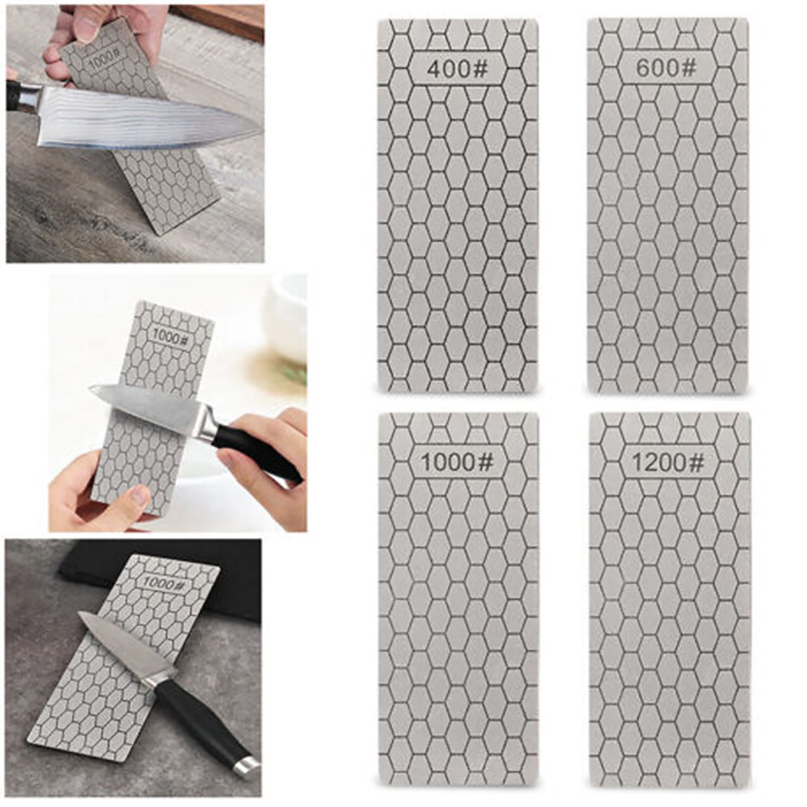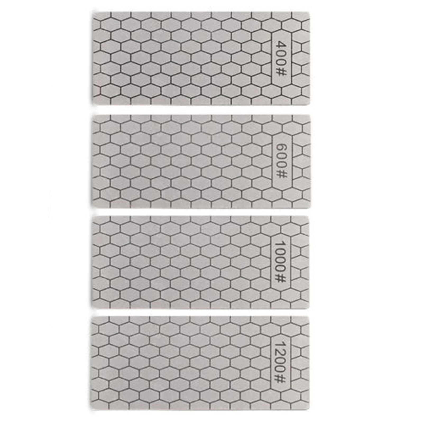 Package Includes: 1 x Diamond Sharpening Plate 400 Grit 1 x Diamond Sharpening Plate 600 Grit 1 x Diamond Sharpening Plate 1000 Grit 1 x Diamond Sharpening Plate 1200 Grit