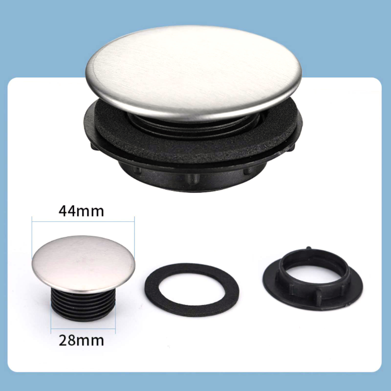 Features: High quality materials and excellent sealing: Made of high quality 304 stainless steel and PP material, it not only ensures the robustness of the product, but also has excellent sealing performance. This combination effectively prevents water from leaking through the water slot holes and keeps the kitchen clean and dry. Rust resistant and durable, long as new: The main part is made of high-quality stainless steel, there is no need to worry about rust, and it can remain bright as new even in a humid kitchen environment, greatly extending the service life. Easy installation, out of the box: Designed with a quick installation mechanism, it can be easily installed on the sink without complex tools or expertise, and enjoy its convenience immediately. Whether it is replacing the old cover or the new sink, it can be completed quickly, saving time and effort. Beautiful decoration, enhance the style: Elegant silver appearance and smooth edge design, not only practical, but also as a kitchen decoration, perfectly match most sinks, improve the overall kitchen style and beauty. Multi-functional applications to meet a variety of needs: Not only for the sealing of sink faucet holes, but also for soap dispenser holes, etc., to meet the waterproof needs of different locations in the kitchen. Its practicality and convenience make it an indispensable small must-have item in the kitchen and easily cope with various scenarios.