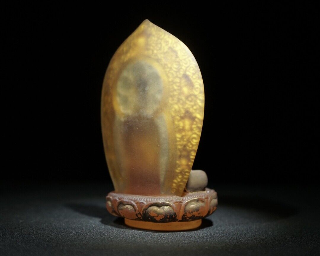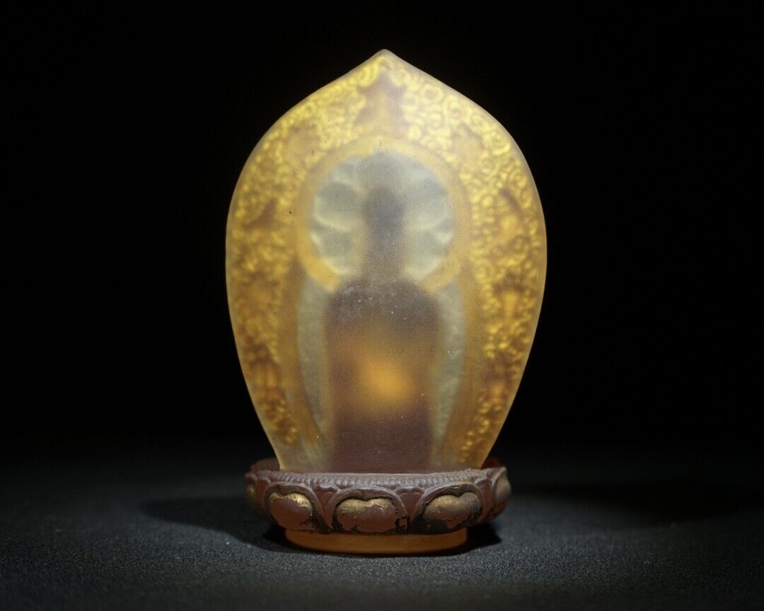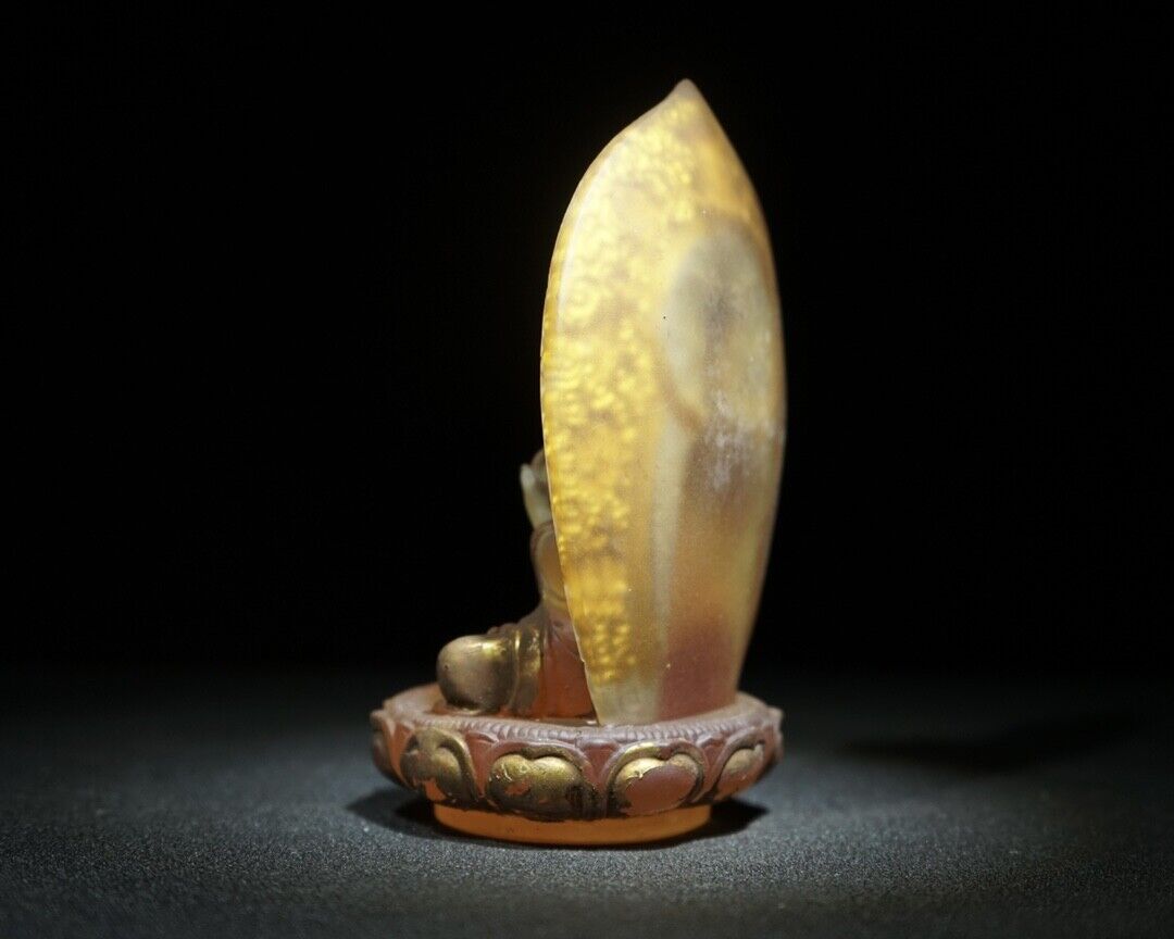 collections old glass antique colored glaze Buddha Statue Painted Rare Carving