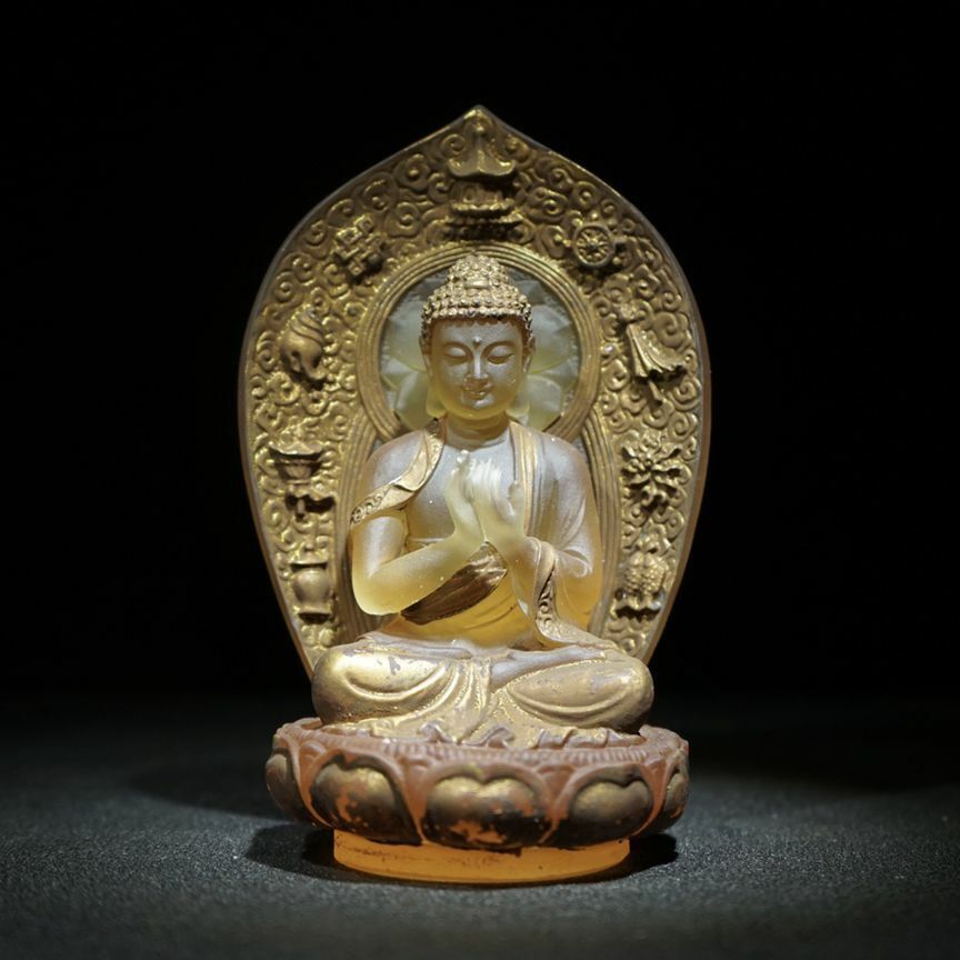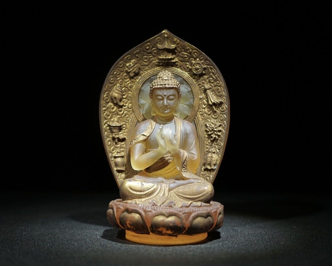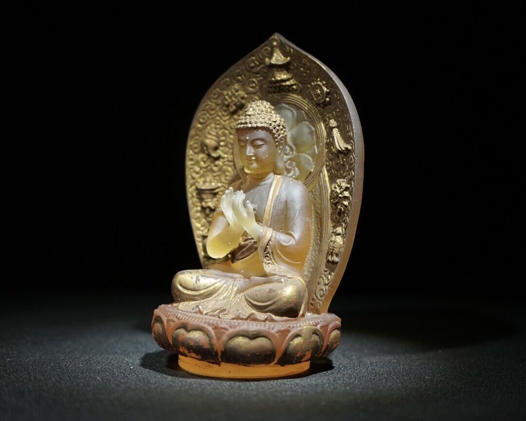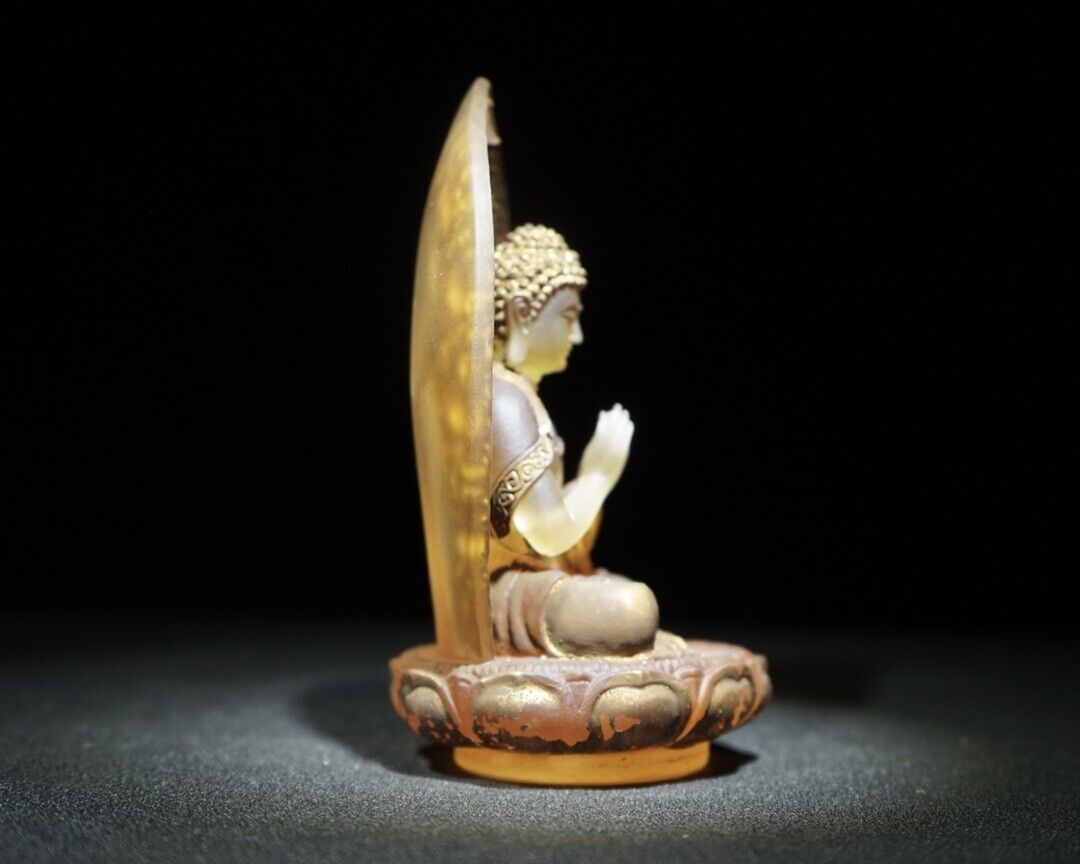Old Tibet Buddhism Glass Colored glaze Carved Buddha Statue Carving