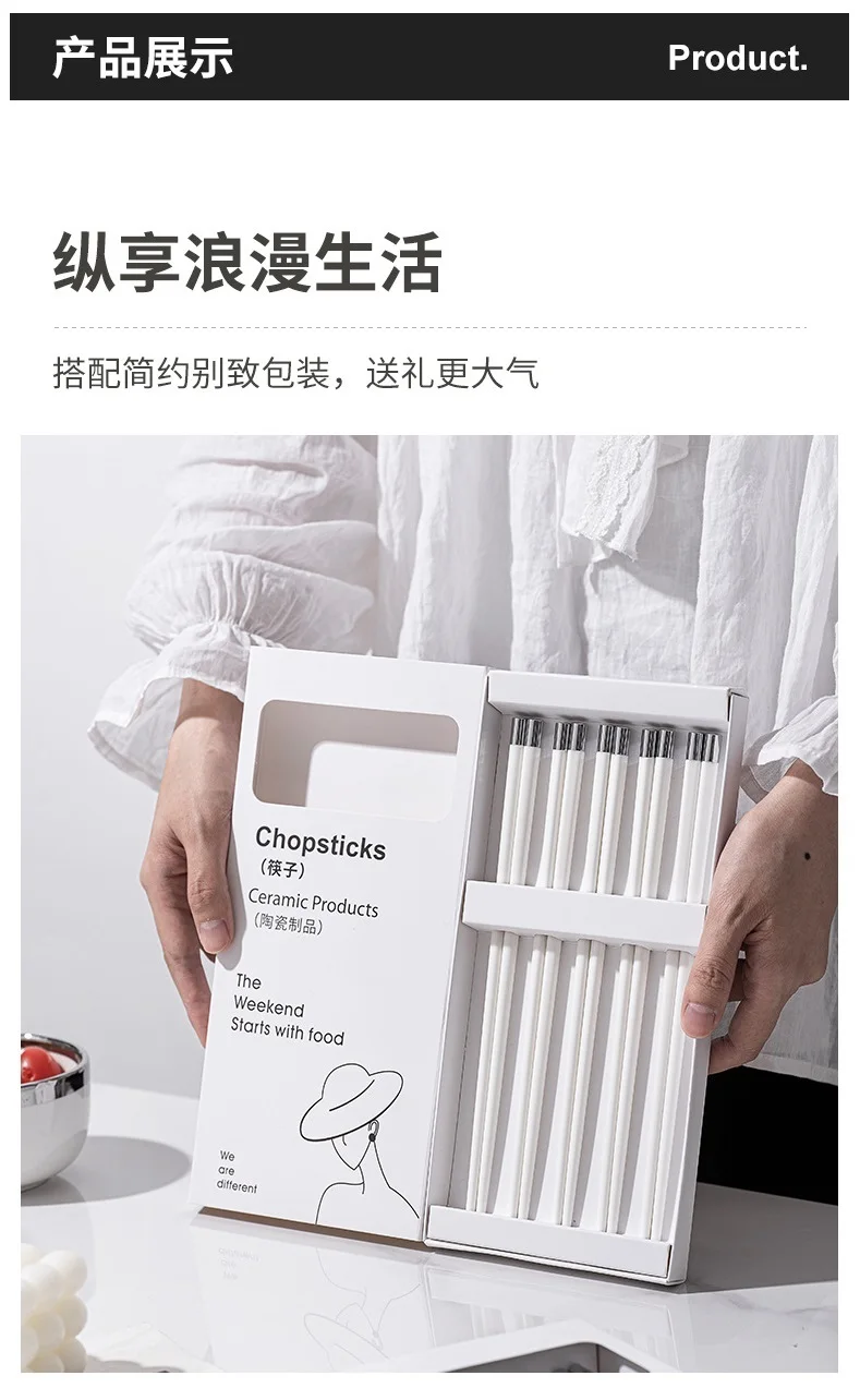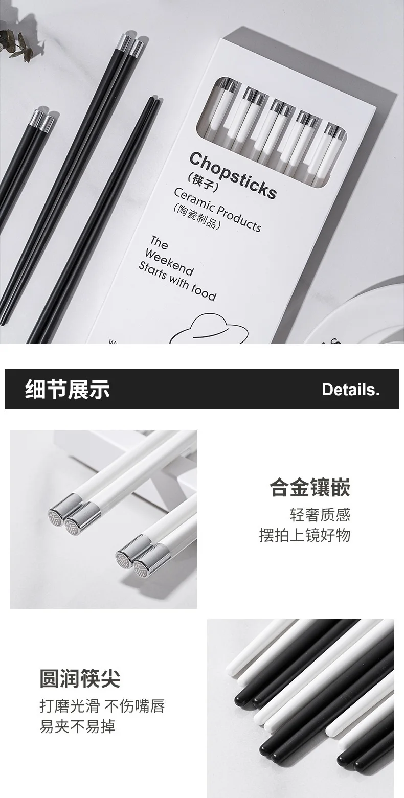 5 Pairs/set Ceramic Chopsticks Household Chinese Style Chopsticks Bone Porcelain Sushi Long Chop Stick Kitchen Healthy Tableware