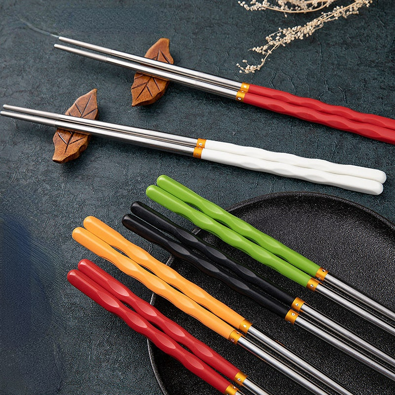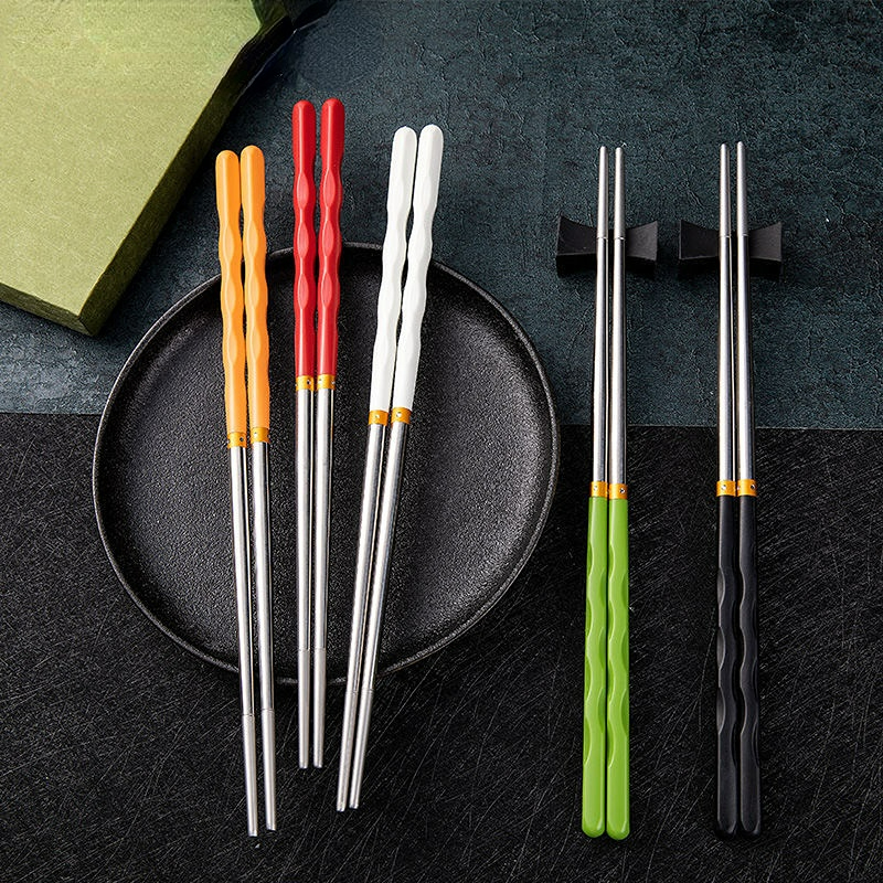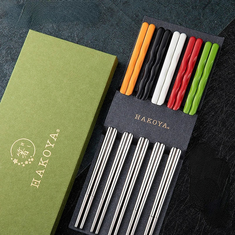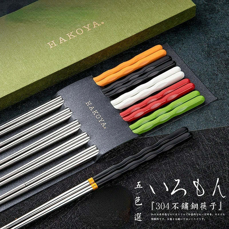 5pcs Set Pack Non-Slip Stainless Steel Chopsticks Reusable Tableware Dinning Japanese Chopstick Sushi Food Sticks