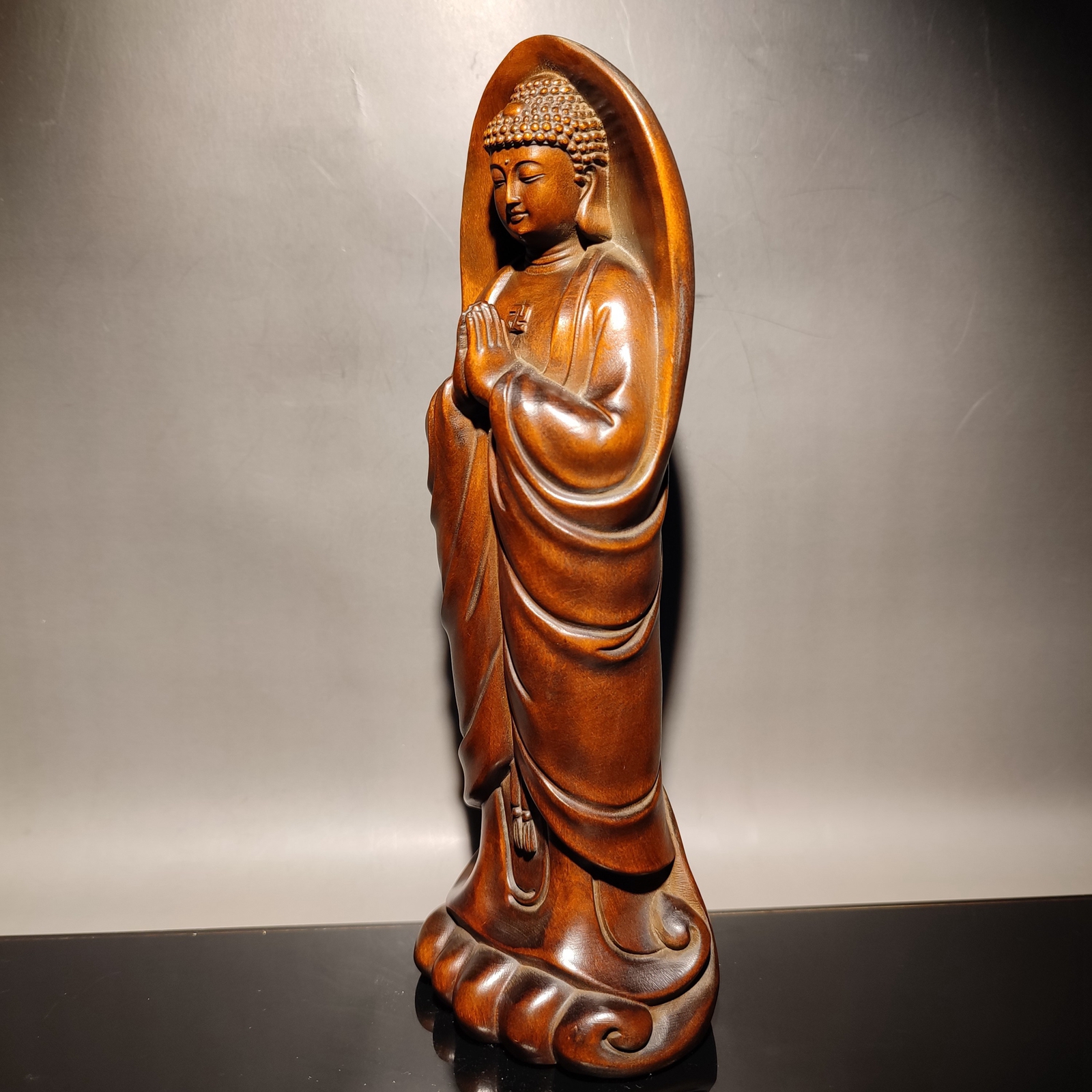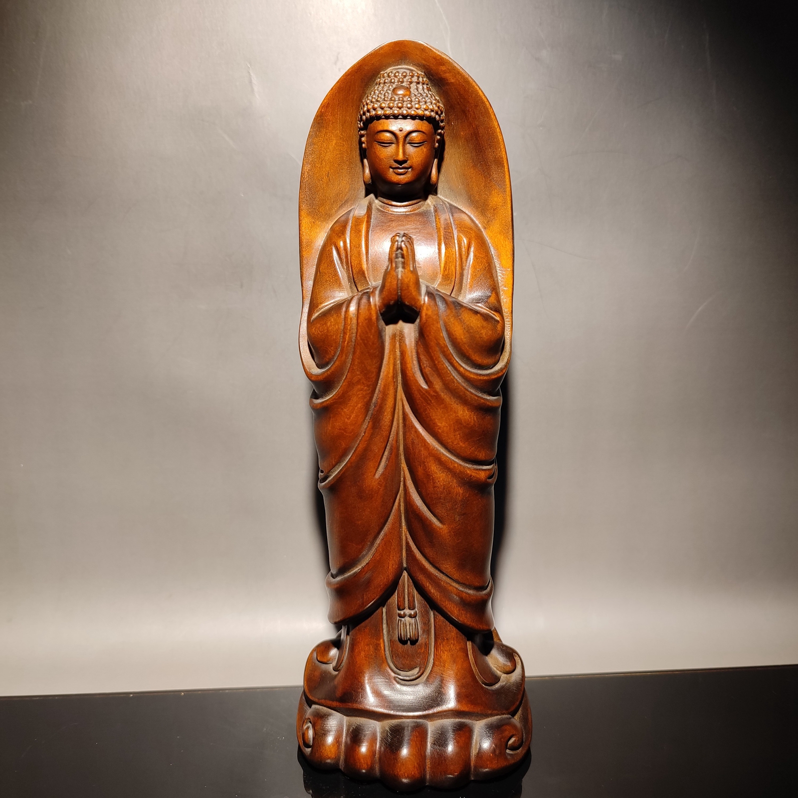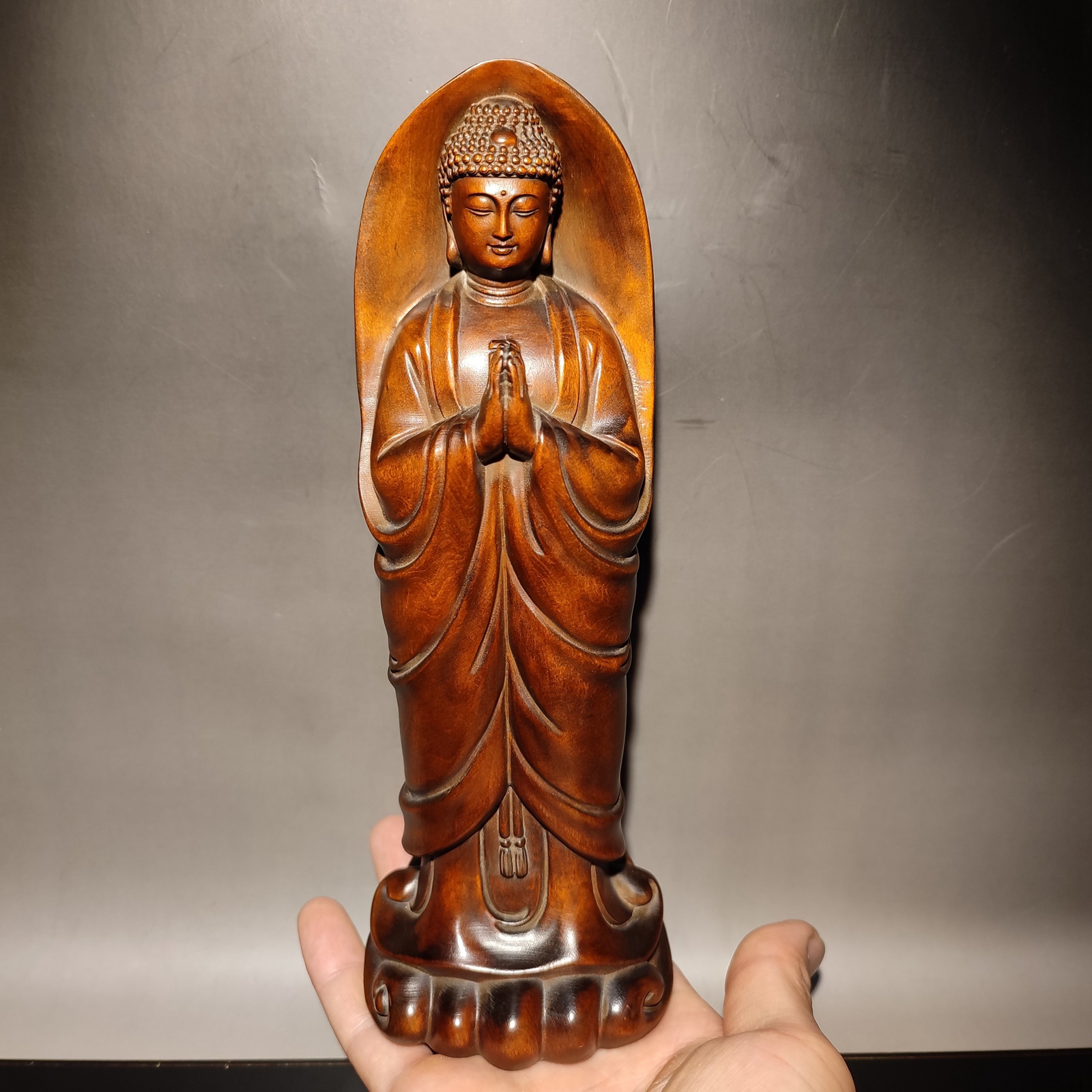Exquisite vintage 8"antique wood carving Boxwood wooden sculpture artwork buddha statue Shakyamuni art nice art decor good luck gift Size: 8.26x2.95x2.16 " inch = 21x7.5x5.5 cm Weight: 285 g = pound = 10.05 oz