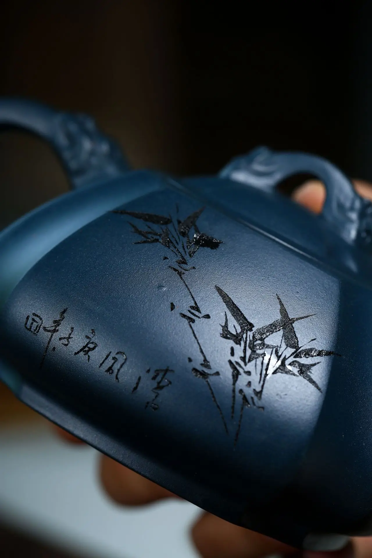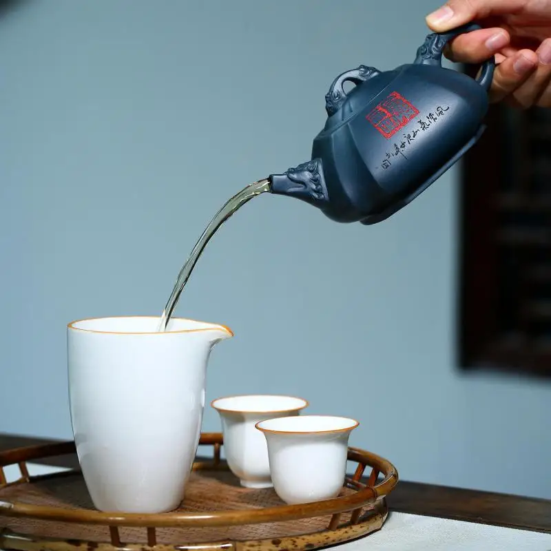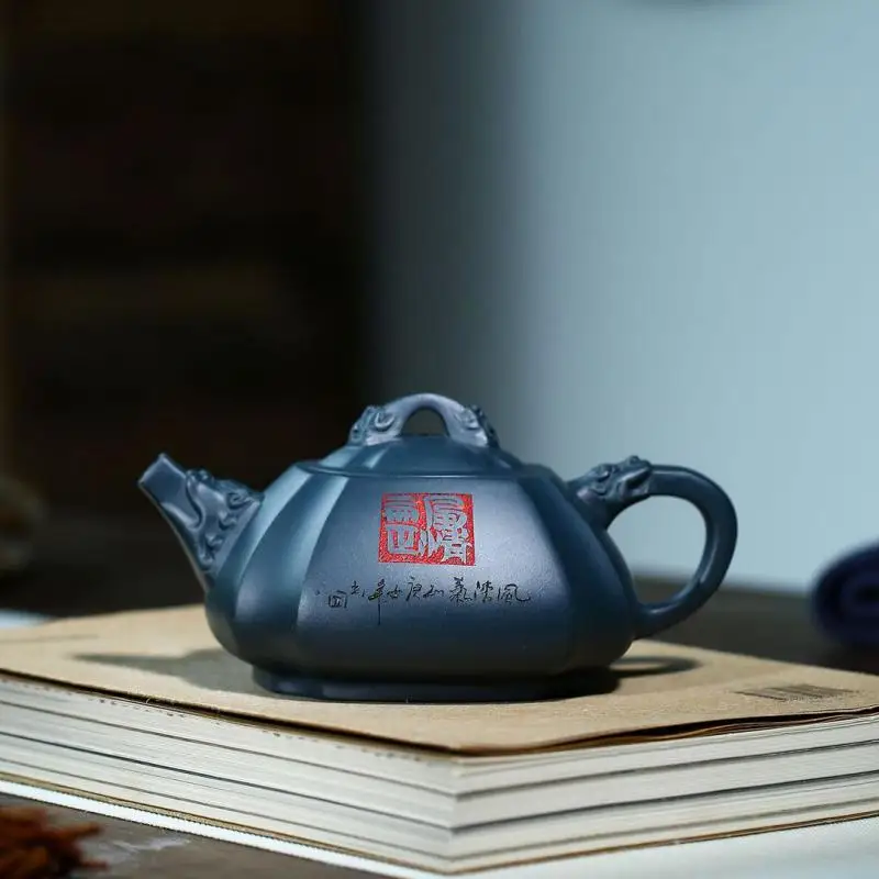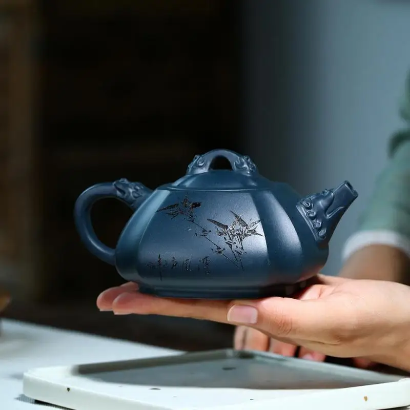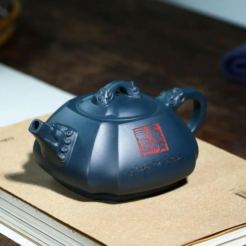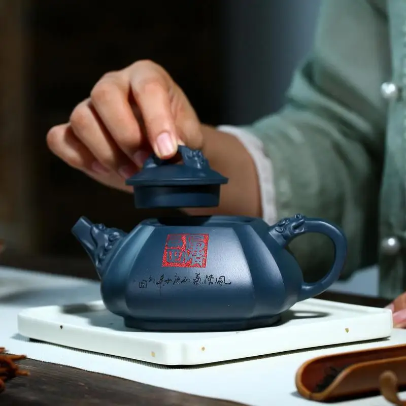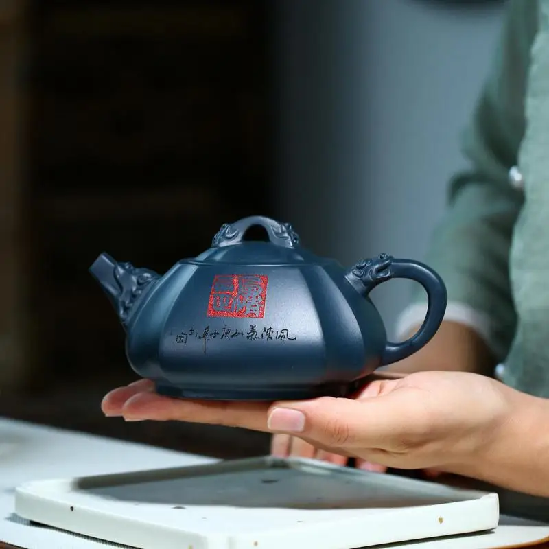A stone scoop carved with dragon rhyme in a famous purple clay teapot in Tianqing clay