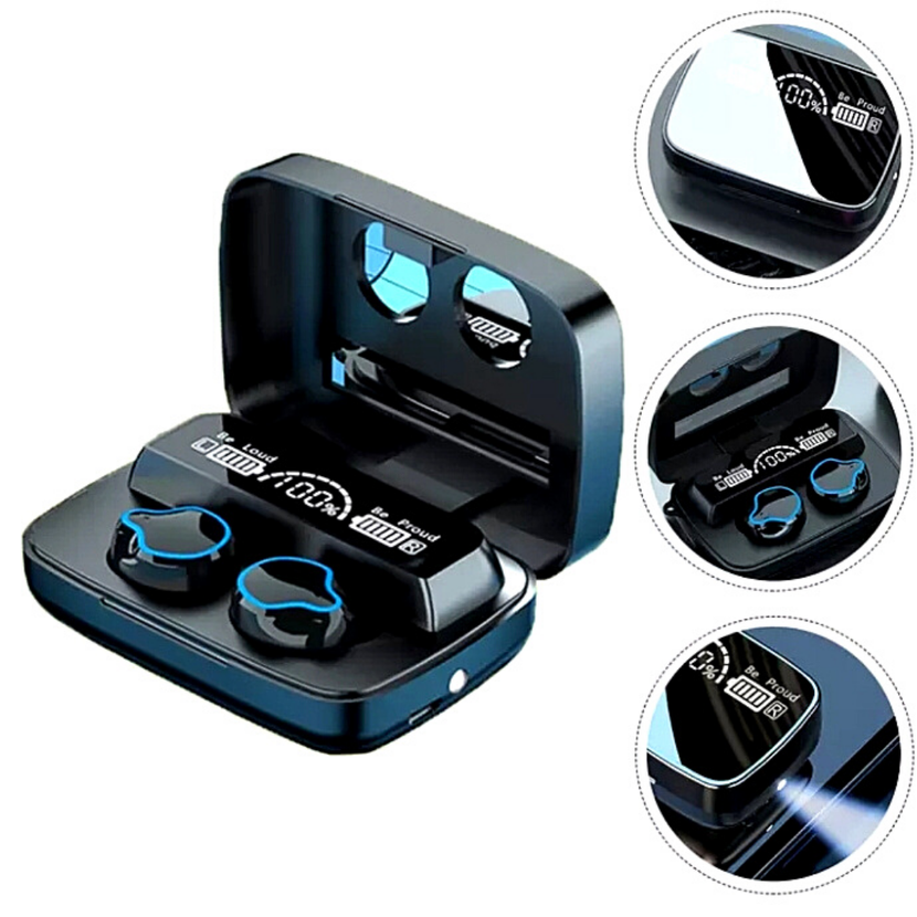 Features: Superior Music Quality: Upgraded Bluetooth 5.1 and noise canceling no wire, no trouble, high-quality chip, built in Mic and HD speaker, make these noise canceling earbuds perform best in bass sound. Enjoy it while playing high fidelity video, Hi-F music- Portable Mirror,Flashlight Optional for single/double ears. Two earphones can be connected to a mobile phone at the same time, or they can be used separately to connect two mobile phones. IPX4 water-resistant and dust proof. Water-resistant for daily life, support outdoor sports on rainy days, sweat in the gym with enthusiasm and no scruples. But as a mobile phone stand, the multi-function headphone compartment can not only serve as a mobile phone stand when you are watching TV series, but also liberate your hands. Active noise reduction, HD calling. V5.0 chip upgrade clear call, shielding ambient noise. Communicate effectively. Specifications: Resistance: 32 ohms Frequency response range: 20-20000Hz Sensitivity: 108±3dB Bluetooth version: Bluetooth 5.1 + EDR Touch Control Connection Distance: 10m Headphone protocol support: A2DP/HFP/HSP/AVRCP Headphone battery: 50mAh Charging case battery: 2000mah Packaging size: 130*115*35mm/5.11*4.52*1.37'' Weight: 120g Latest Bluetooth V5.1 Technology. Long-term use of high-capacity batteries. Using CVC8.0 noise reduction technology. Designed for sport, wearing sturdy clothes. Sub woofer stereo. High Definition Microphone Support Call. With Digital Display Function. Package Included: 1*Pair of Bluetooth Earbuds 1*Charging dock 1*USB Charging Cable 1*User Manual