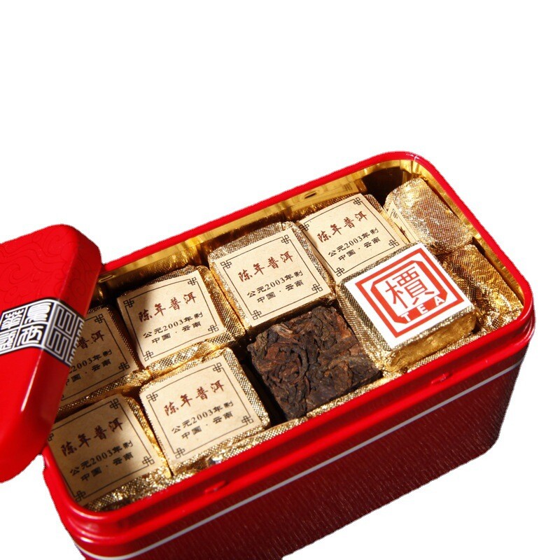 Black Tea Small Square Brick Tea Natural Pu-Erh In Iron Box Health Care 250g