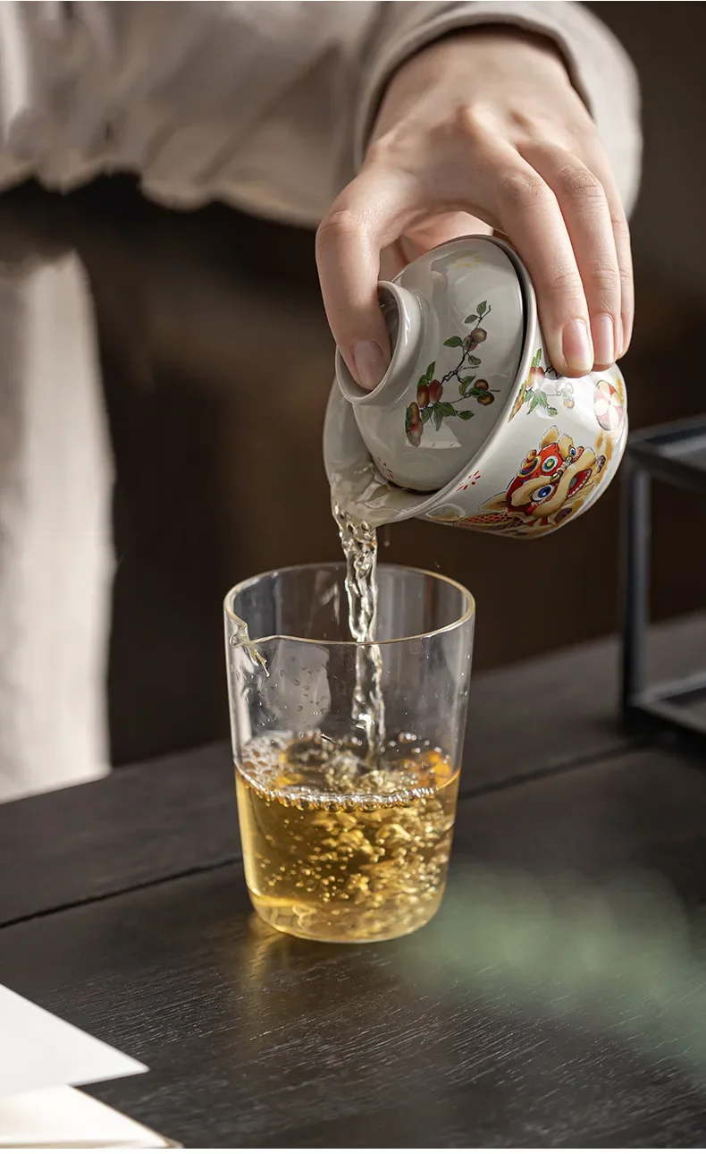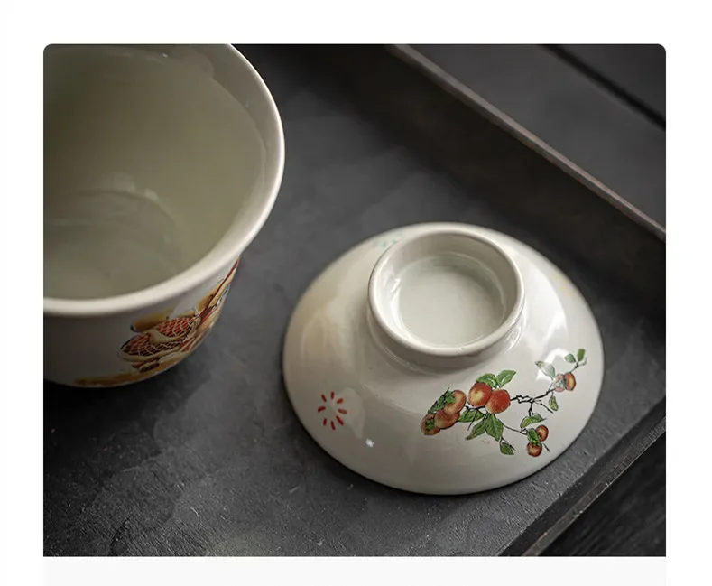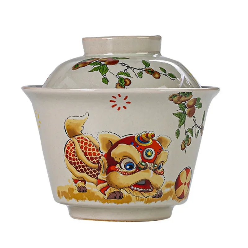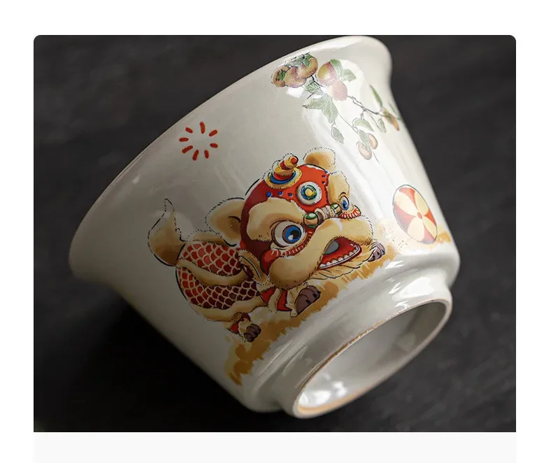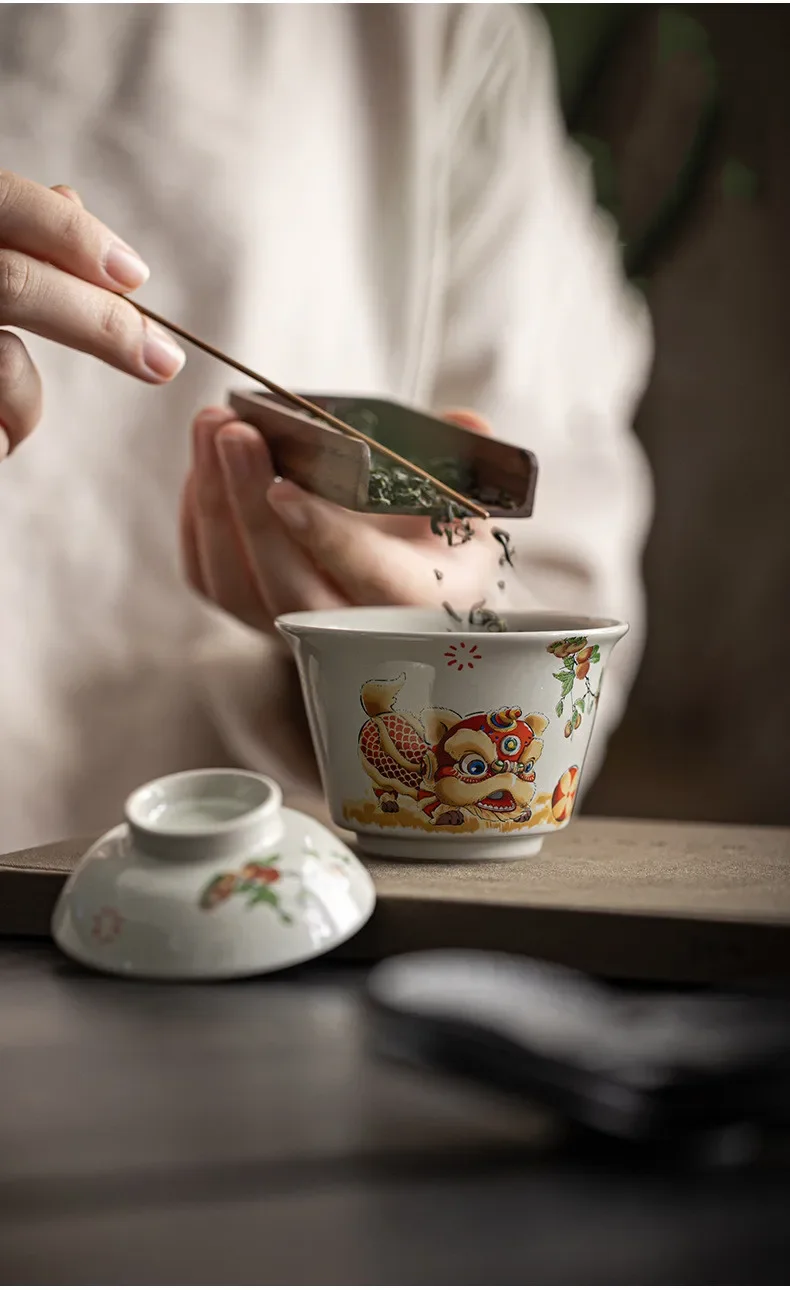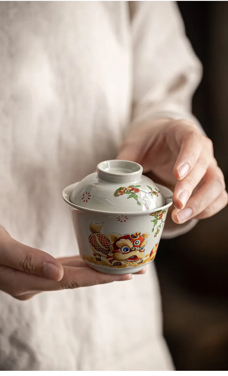 Ceramic Handmade Gaiwan Creative Color Painting Lion Tea Tureen Portable Office Tea Bowl with Cover Teacup Chinese Tea Set