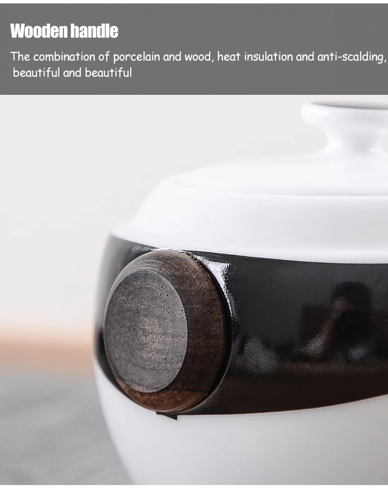 Wooden handle, the combination of porcelain and wood, heat insulation and anti-scalding, beautiful and beautiful