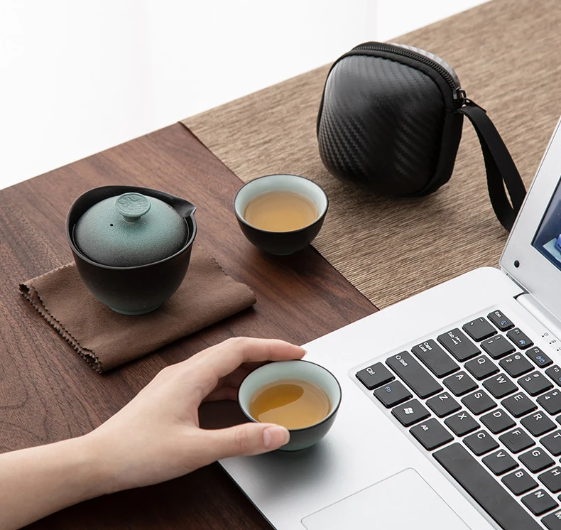 Ceramic Porcelain Kung Fu Teaset Teaware Outdoor Travel Tea Set Gaiwan Anti-scalding 1 Pot 2 Cups Teapot Infuser Tea Ceremony