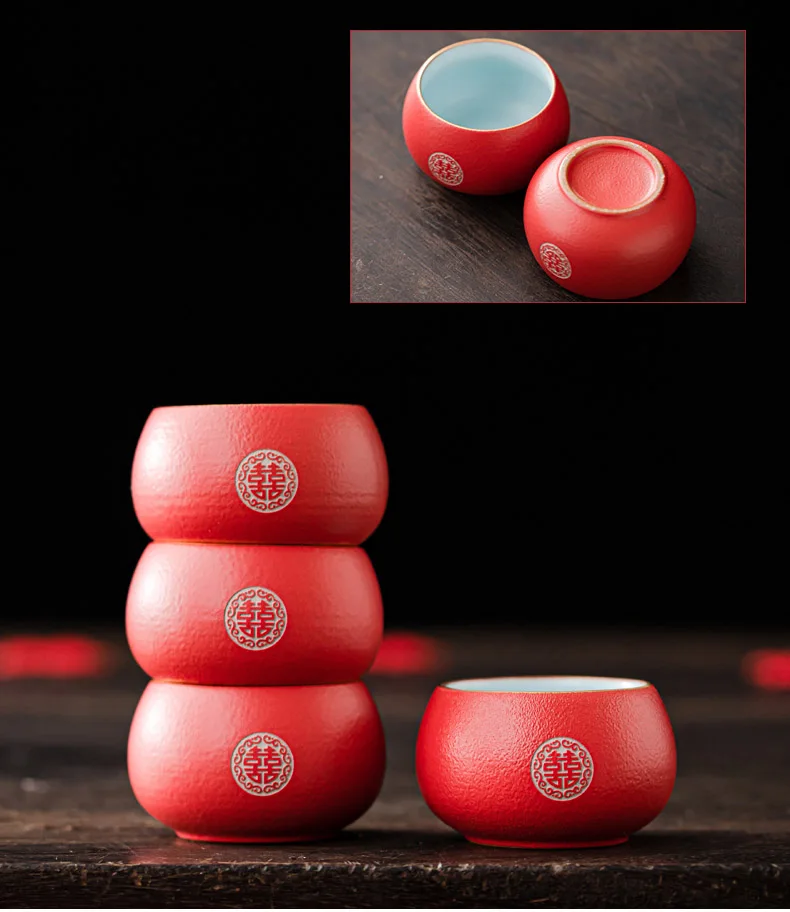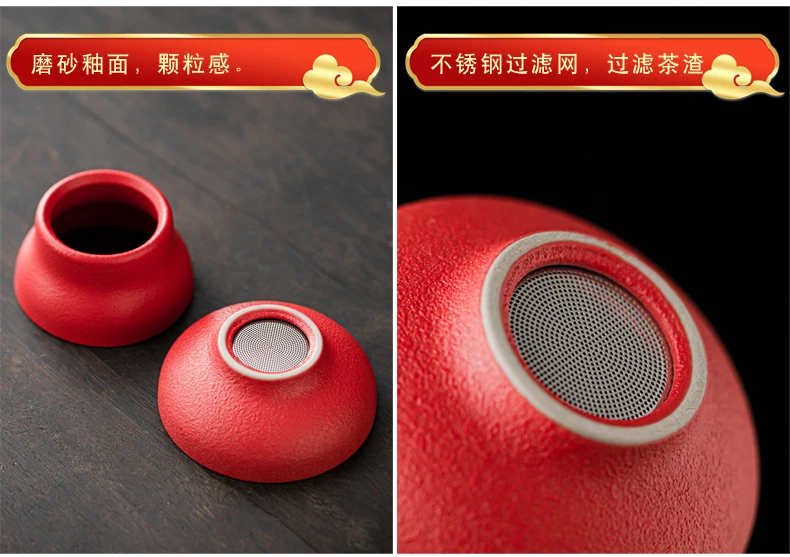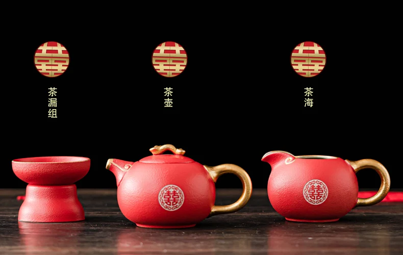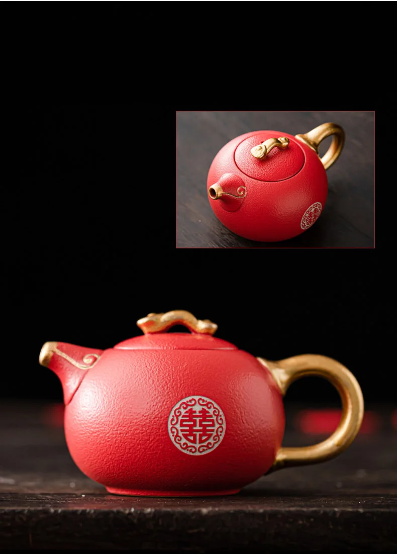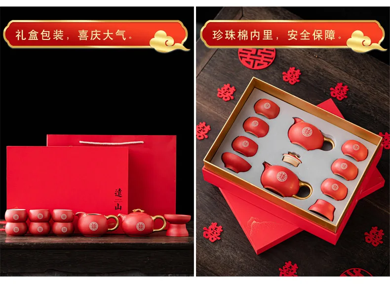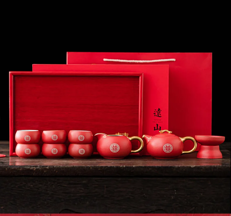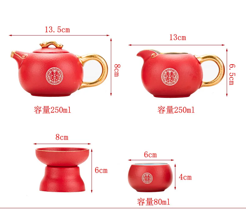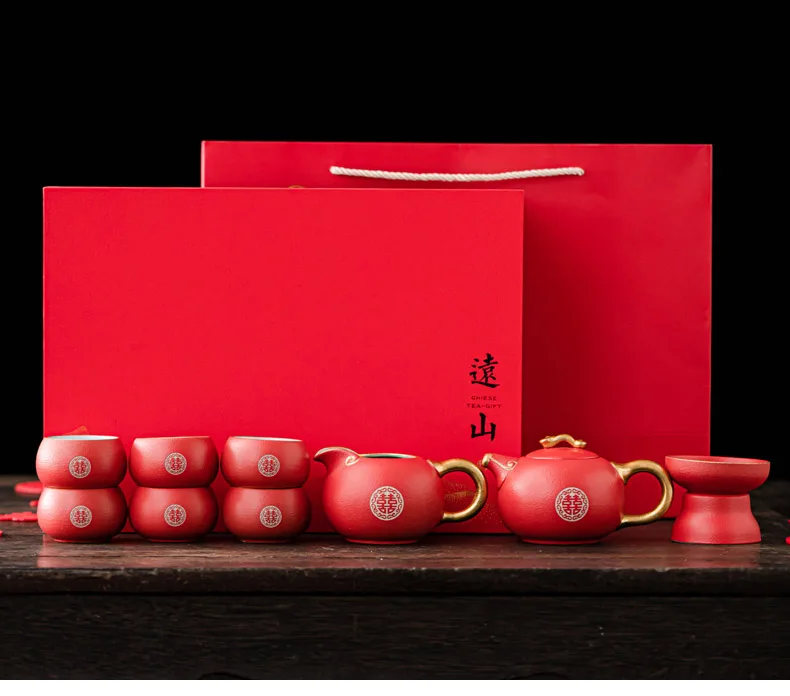 Ceramic Portable Travel Tea Set Porcelain Kungfu Teapot Teacups with Gift Box For Red Wedding Party Marriage Newlywed Supplies