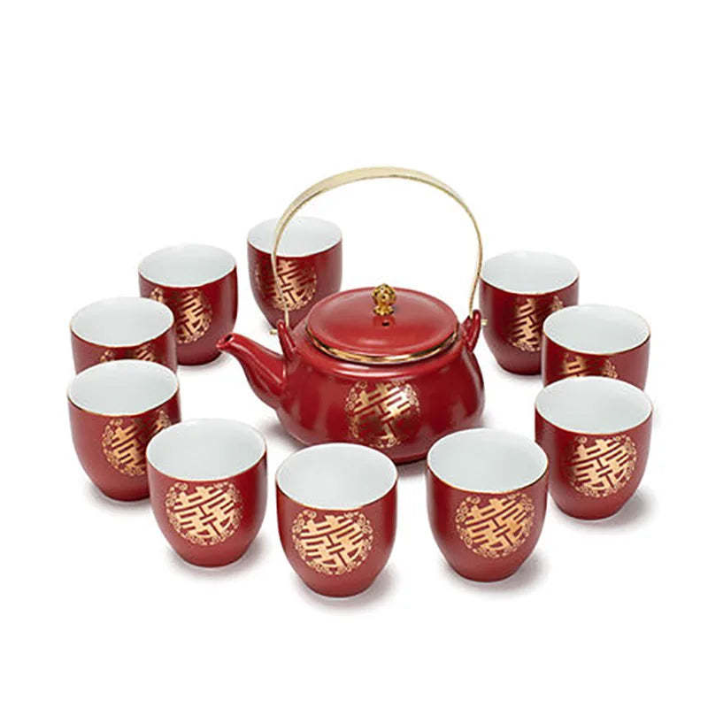 Ceramic Red Wedding Tea Set Newlywed Souvenir Gift Porcelain Chinese Teaware Kettle Teapot Cup Luxury Gift for Best Friend