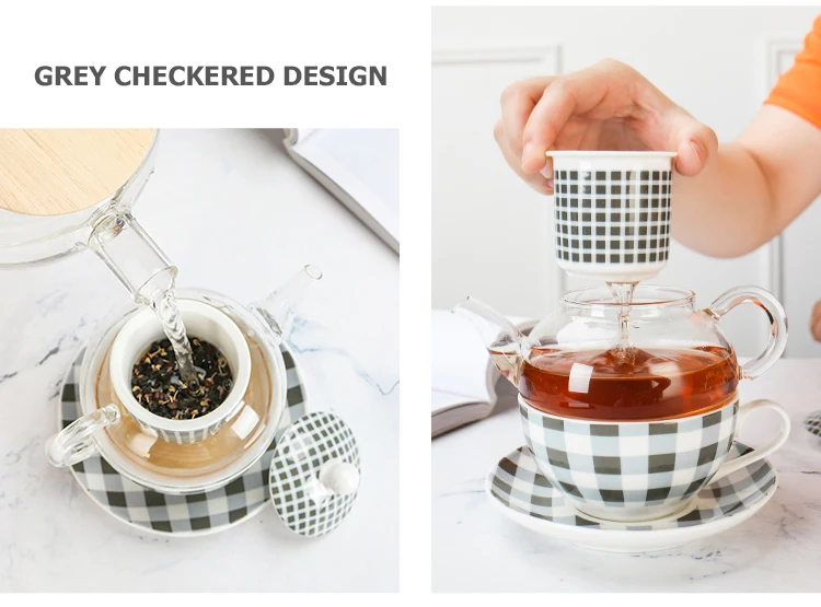 Fine Bone China Tea-For-One Sets Checkered Design