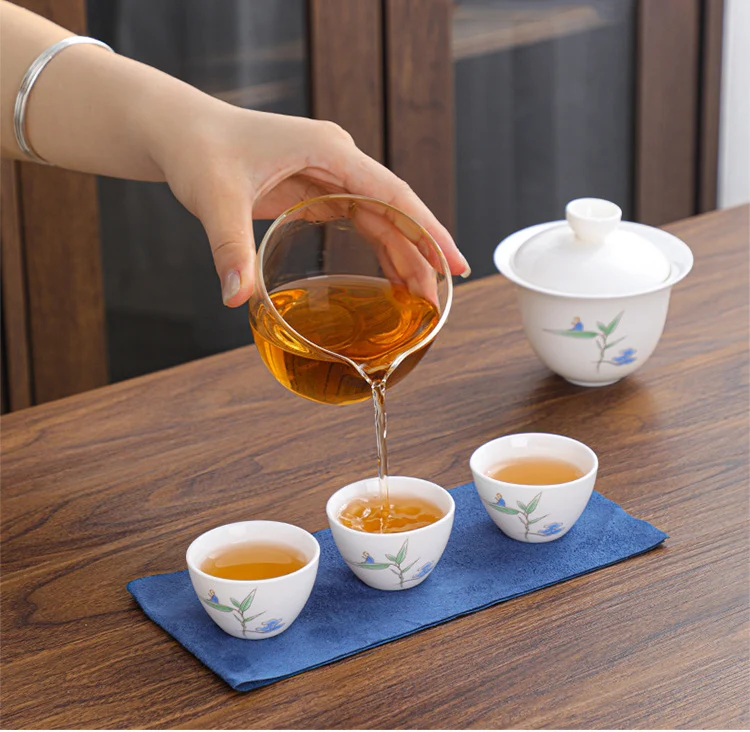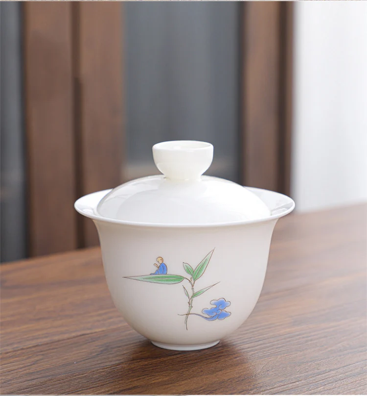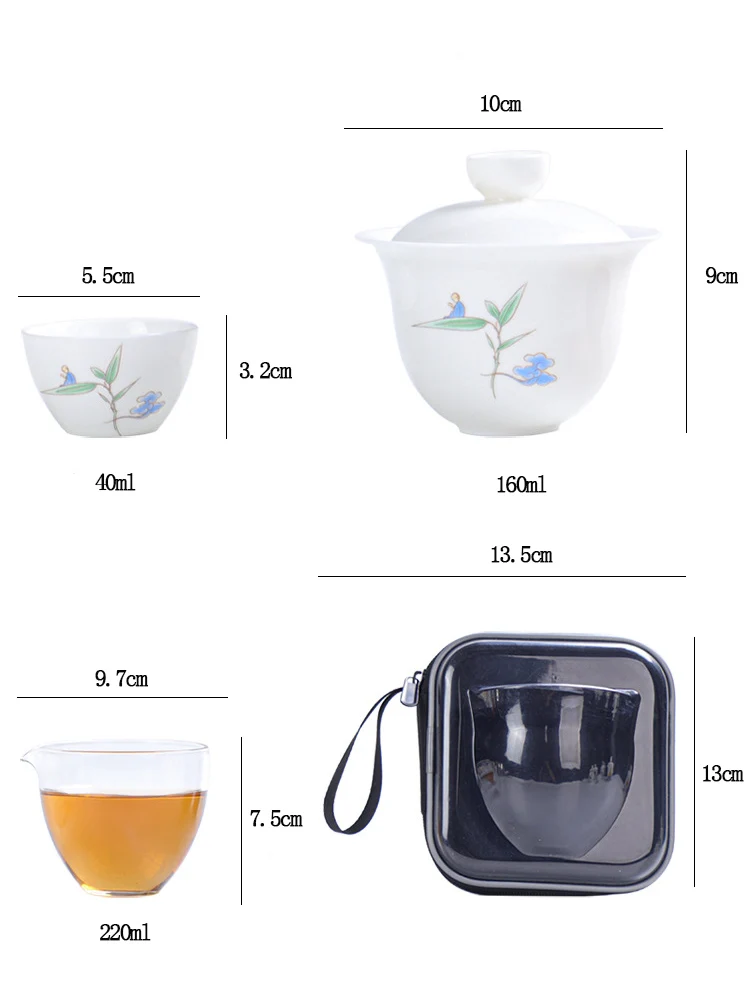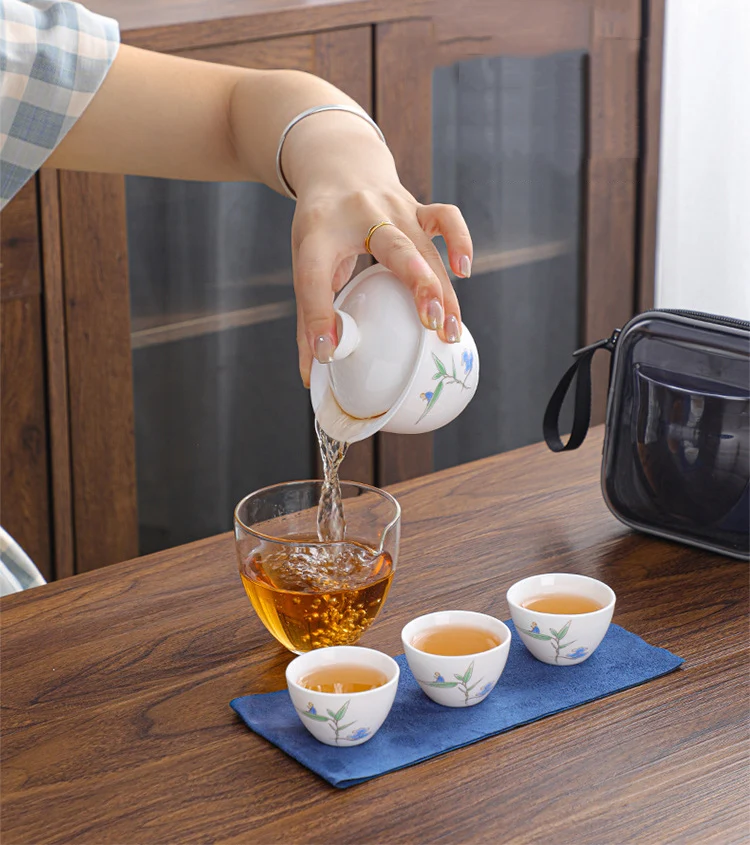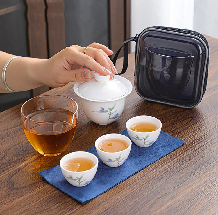 Ceramic Teapot Gaiwan with 3 Cups a Tea Sets Home Office Portable Travel Tea Set Drinking Utensil