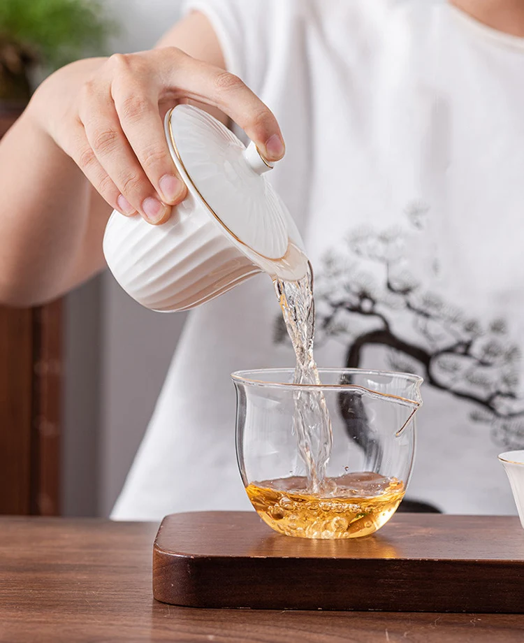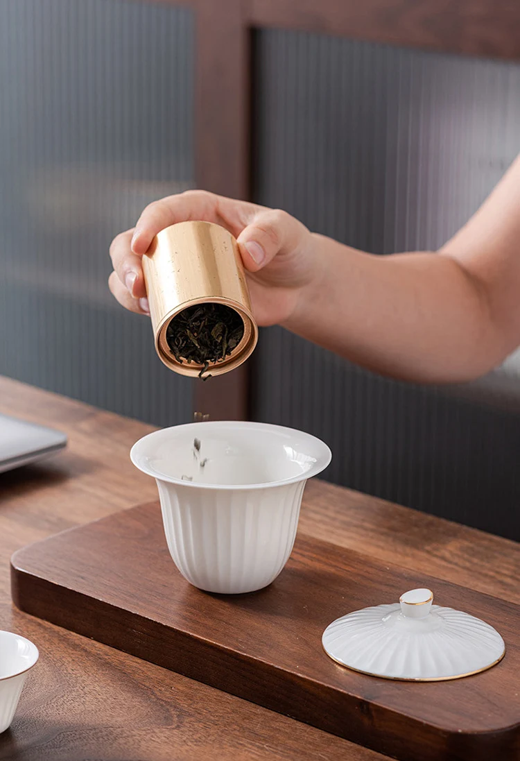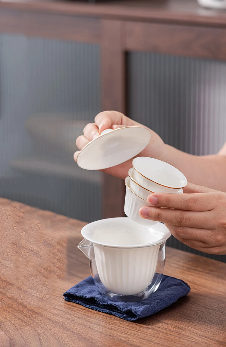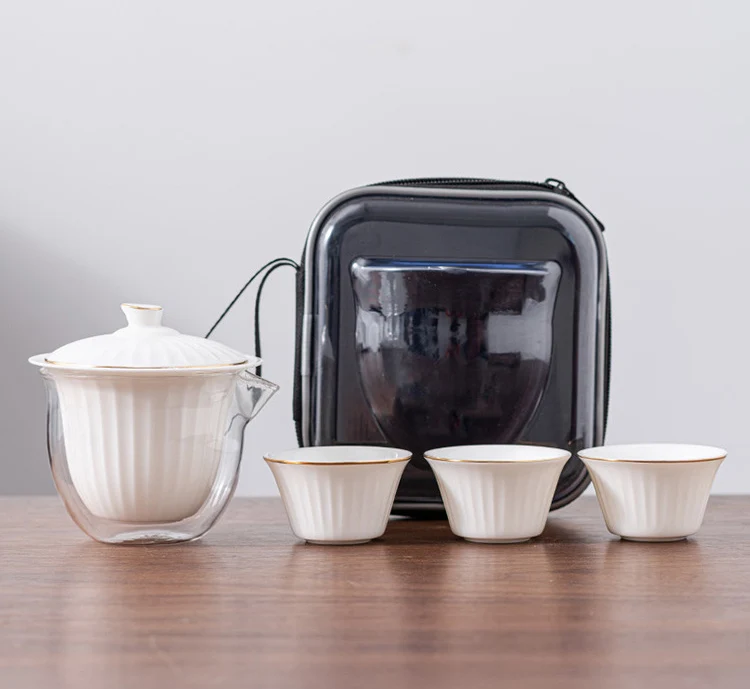 Ceramic Teapot Gaiwan with 3 Cups Portable Travel Home Office Drinking Tea Set with Travel Bag