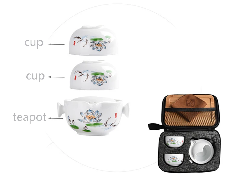 Ceramic teapots gaiwan teacups chinese teaware portable travel tea sets with travel bag Free shipping