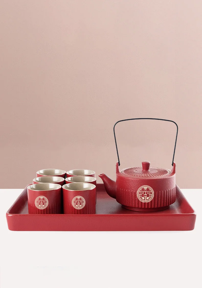 Ceramics Chinese Traditional Red Wedding Double Happiness Tea Pot and Cup Set Teacup Porcelain Teapot Luxury Souvenir Gifts