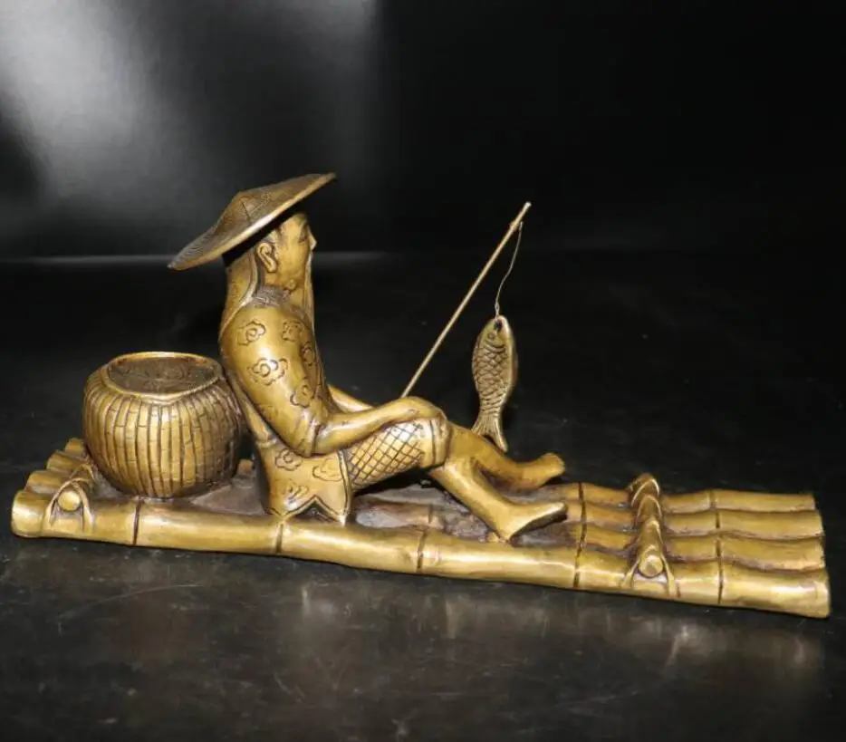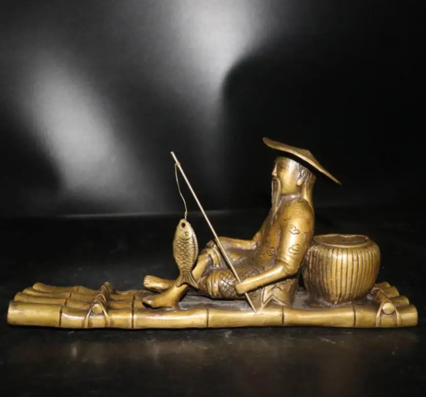 China archaize brass Jiang Ziya fishing crafts statue