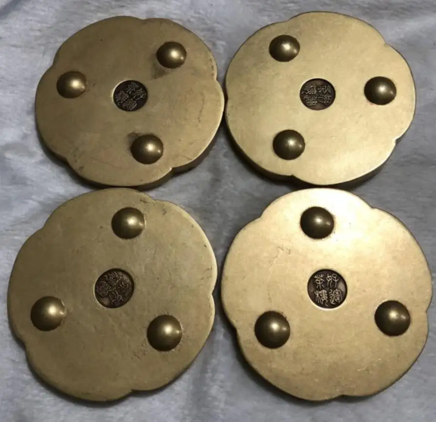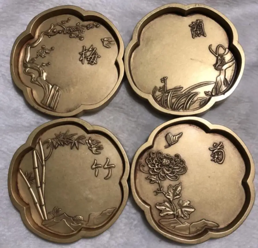 China brass Plum, Orchid, Bamboo and Chrysanthemum saucer crafts statue A set