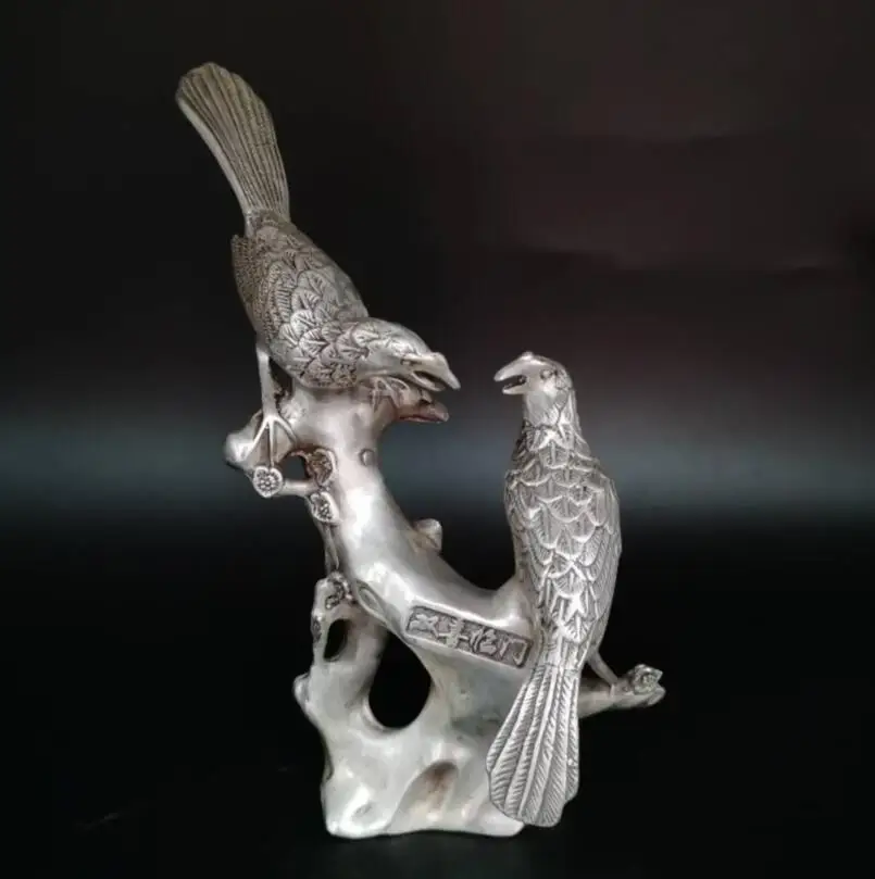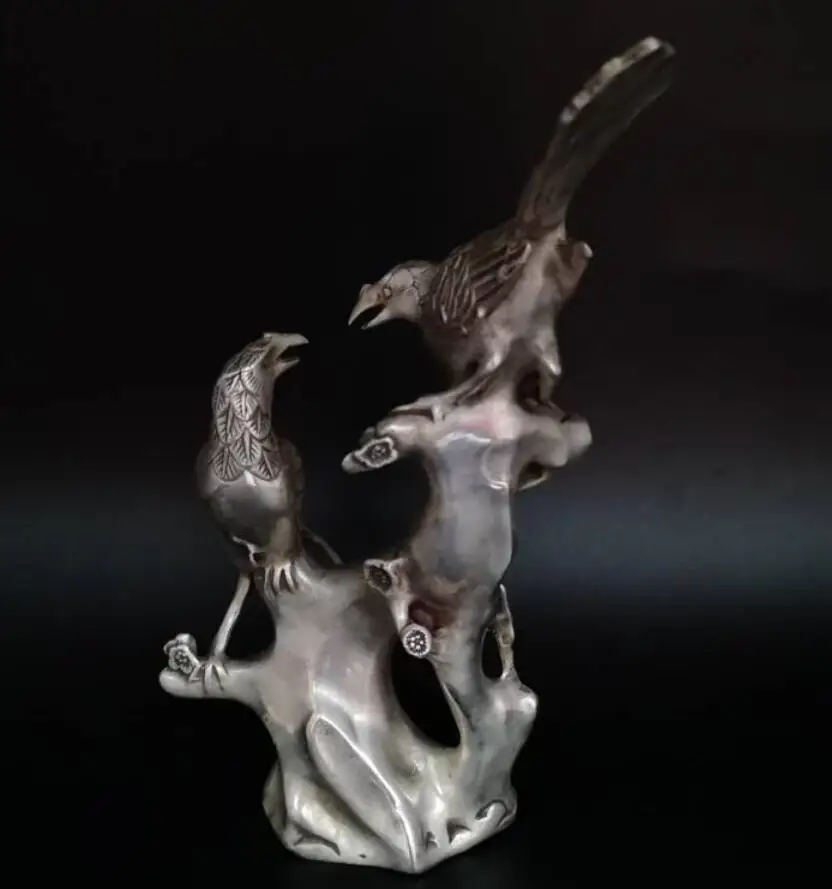 China White copper magpie alighted on plum branch crafts statue