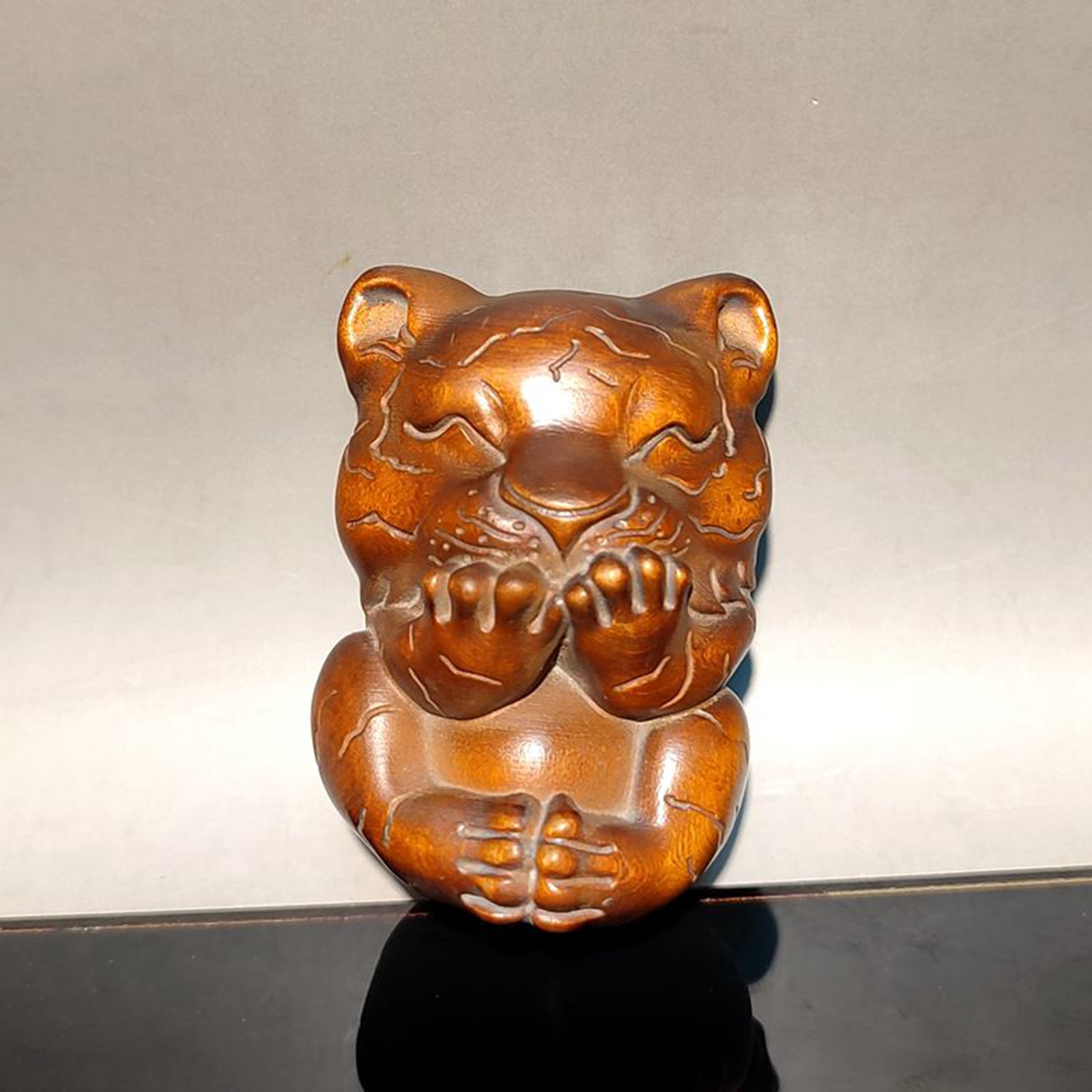 Chinese Boxwood Wooden Statue Statuette Animal cute Tiger home decor sculpture