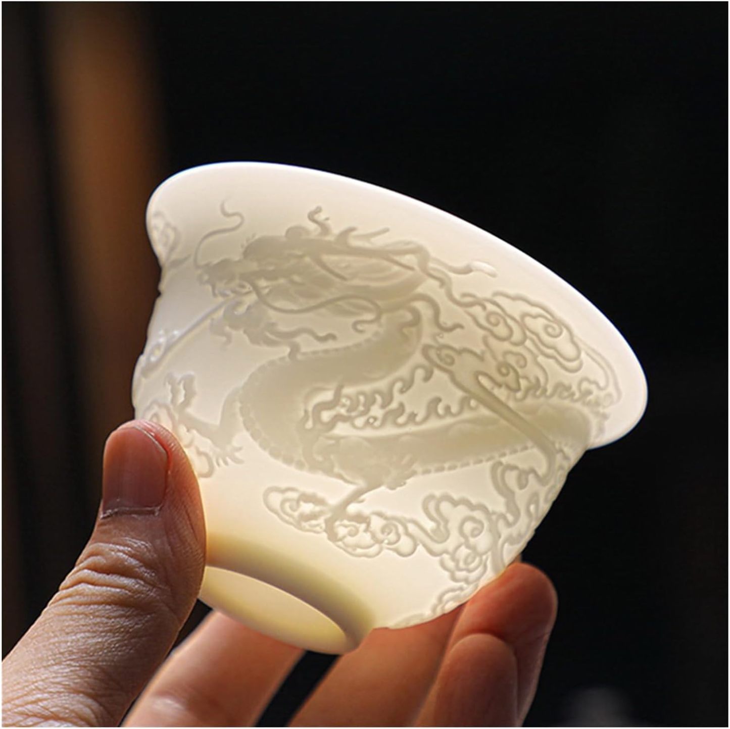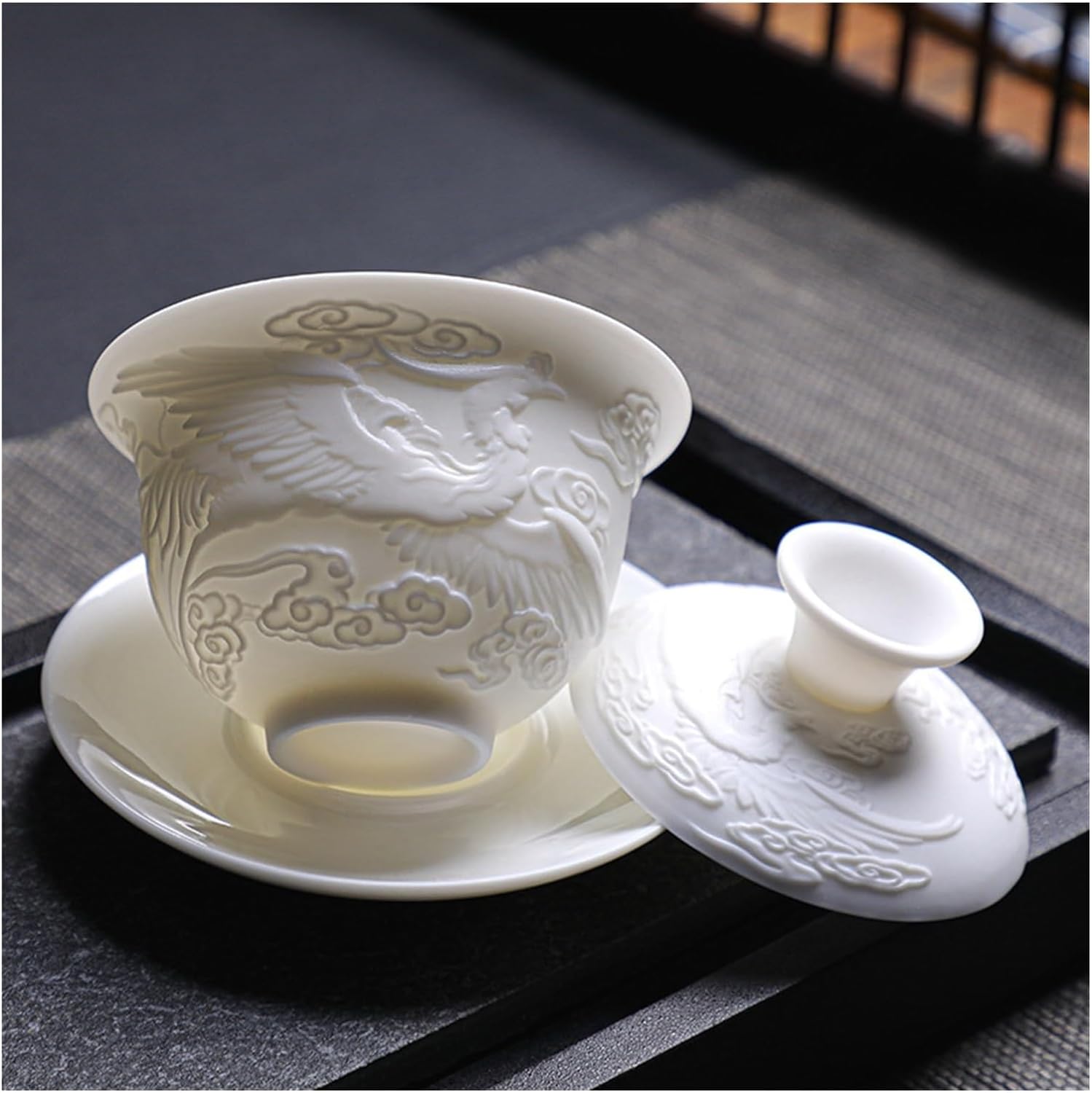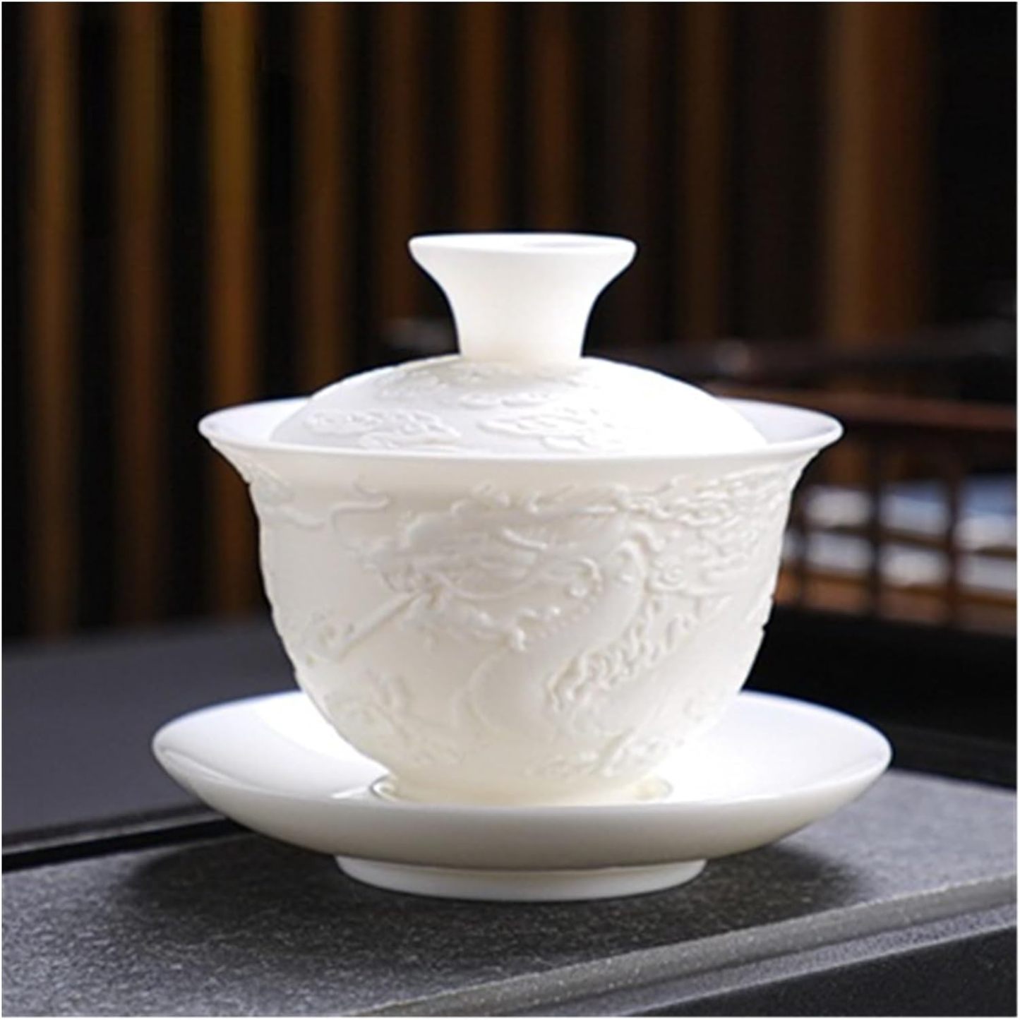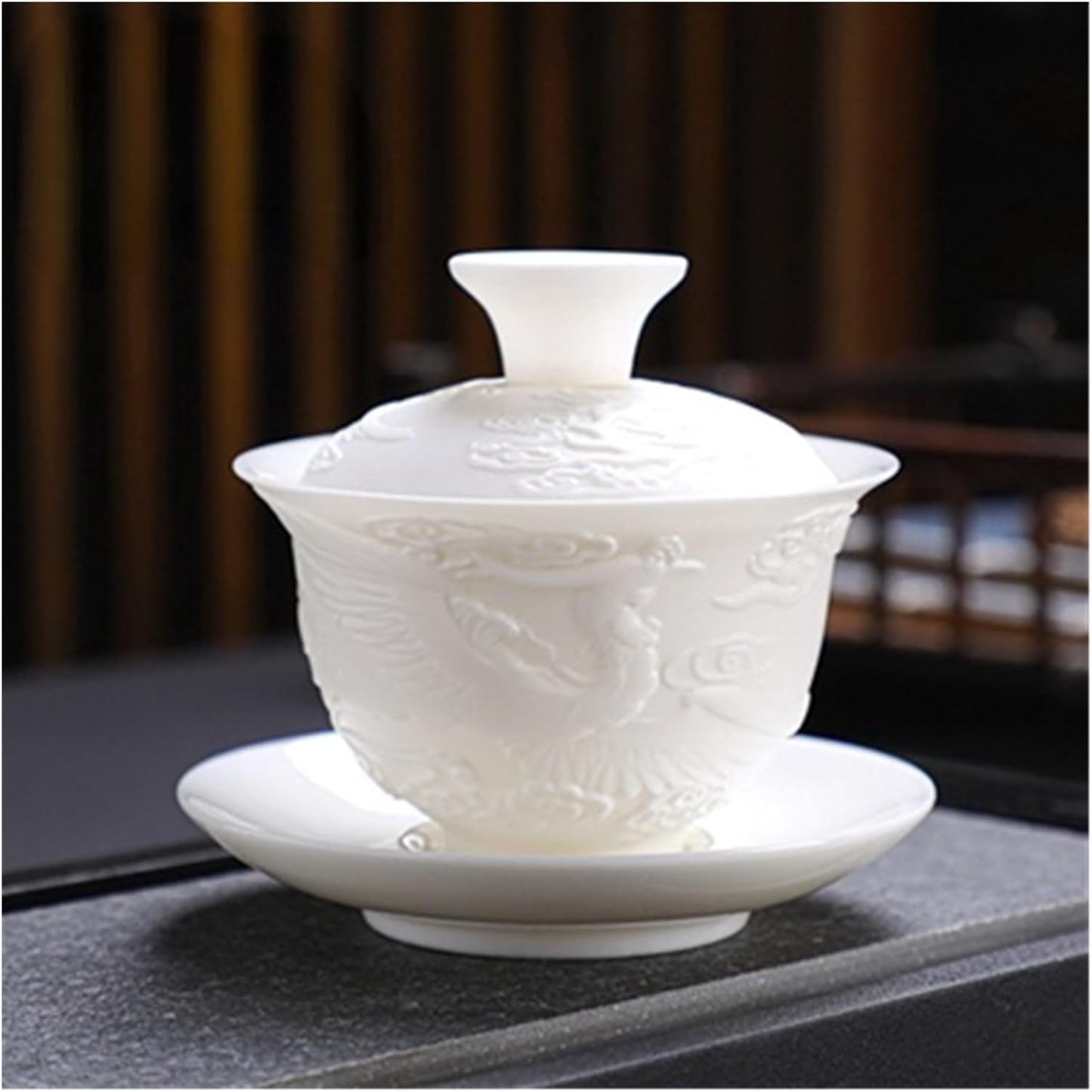 Chinese/Japanese Tea Set Ceramics Gaiwan 150ml relief dragon and phoenix pattern kung fu tea maker drinkware tea set tea bowls set Portable Teapot Set Tea Gift set (Size : Embossed Dragon)