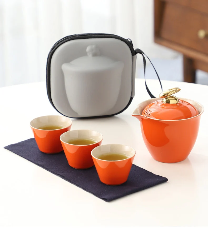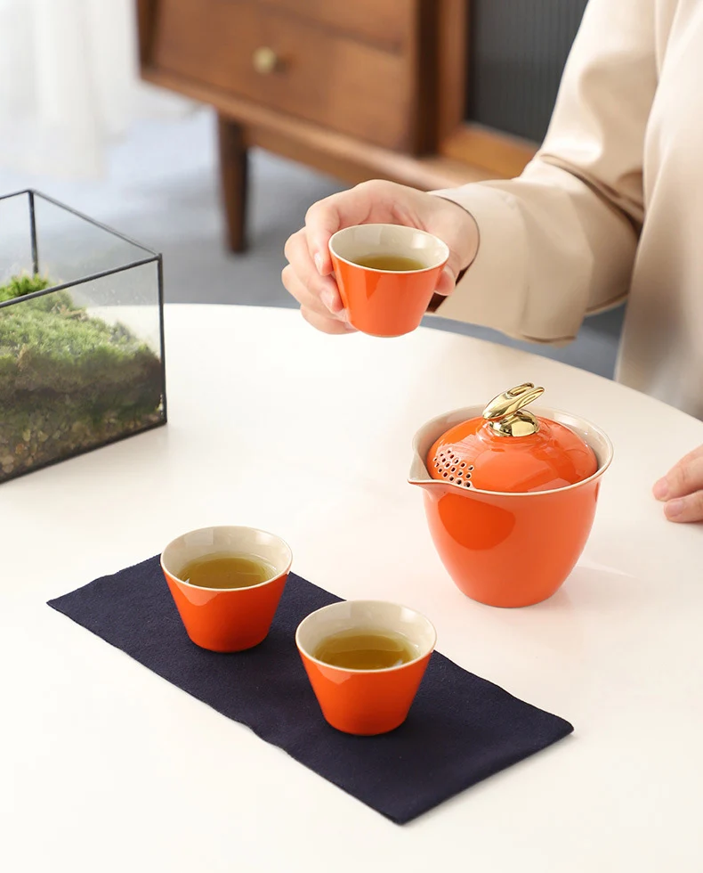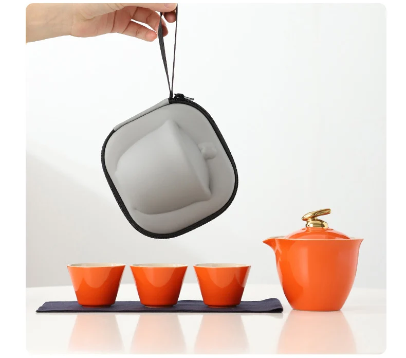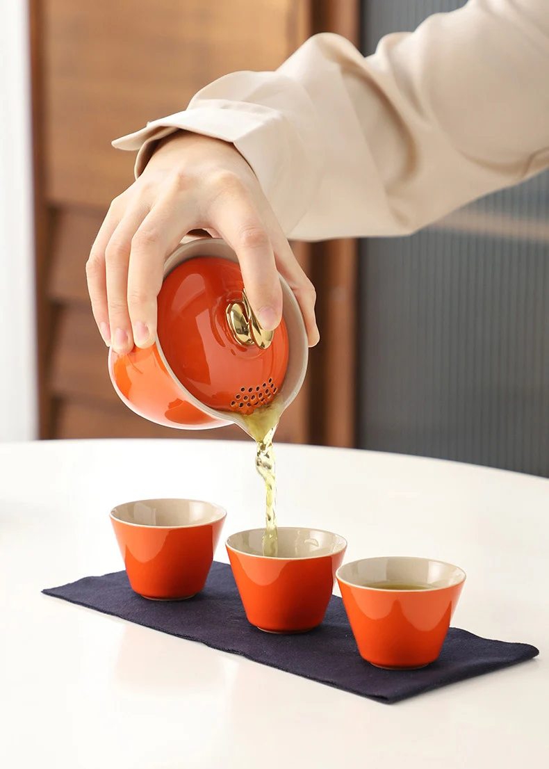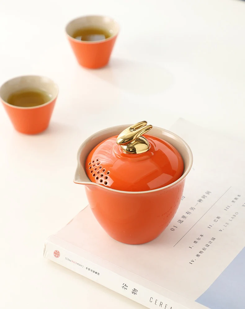 Chinese Kung Fu Tea Set Ceramic Teapot Matt Rabbit Pot Japanese Household Tea Cup Portable Outdoor Travel Gaiwan