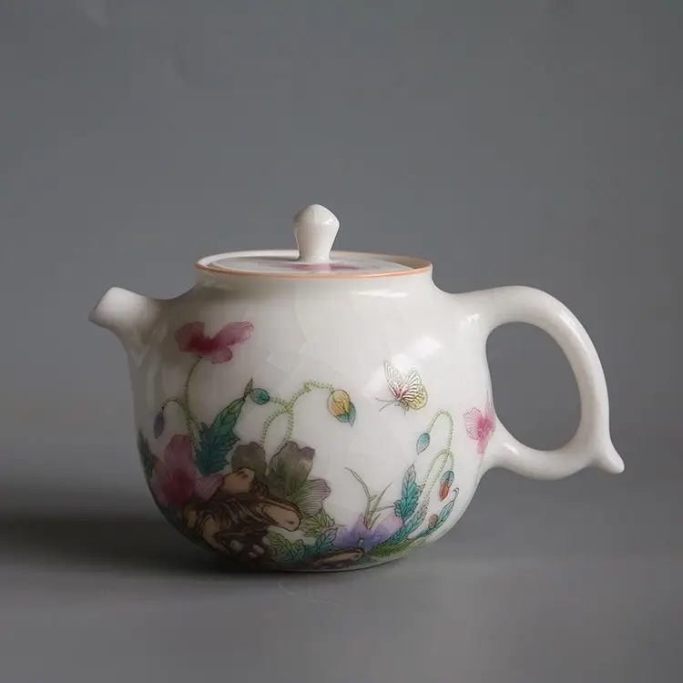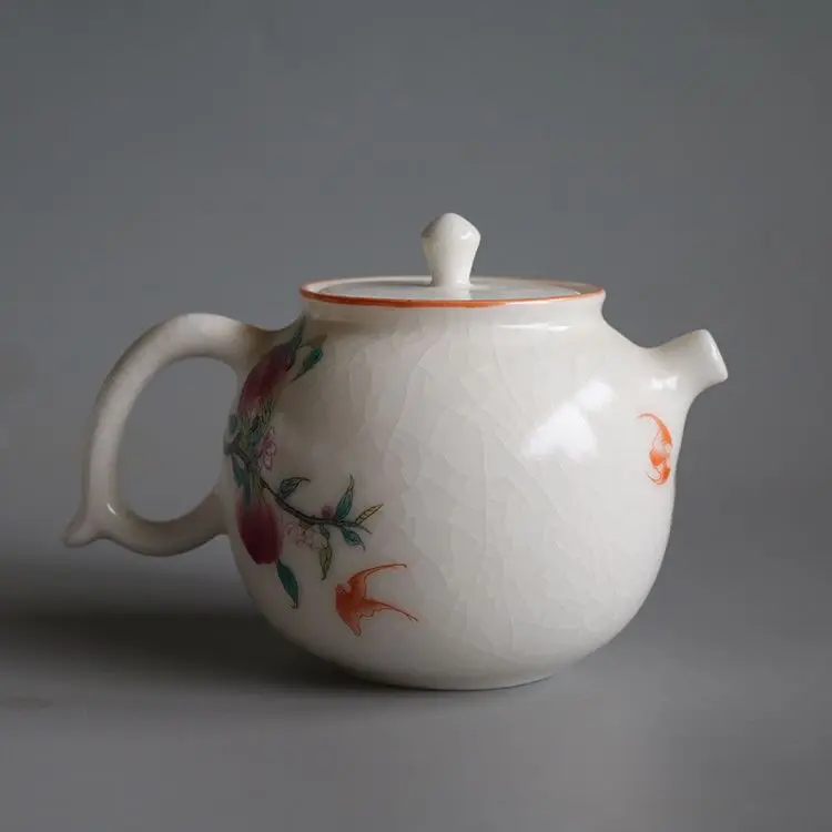 白汝瓷茶壶功夫茶具泡茶壶手抓把过滤壶250毫升家用单壶九桃