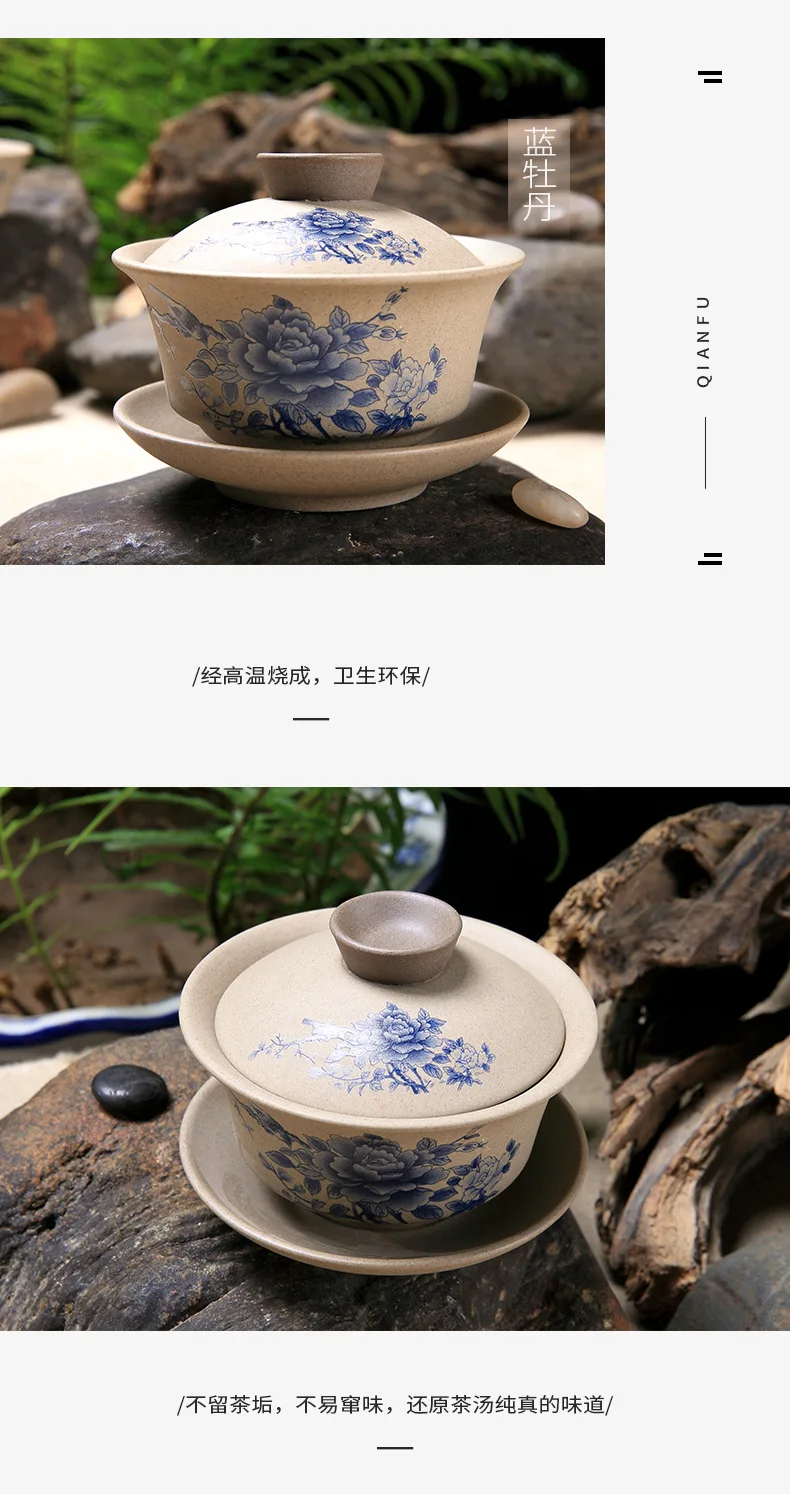 Chinese Kung Fu Teapot Pottery Clay Tea Cup Classical Gaiwan Traditional Handmade Tea Set Cup