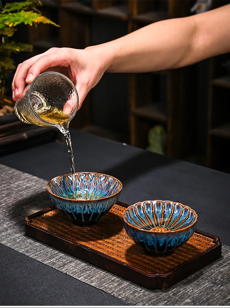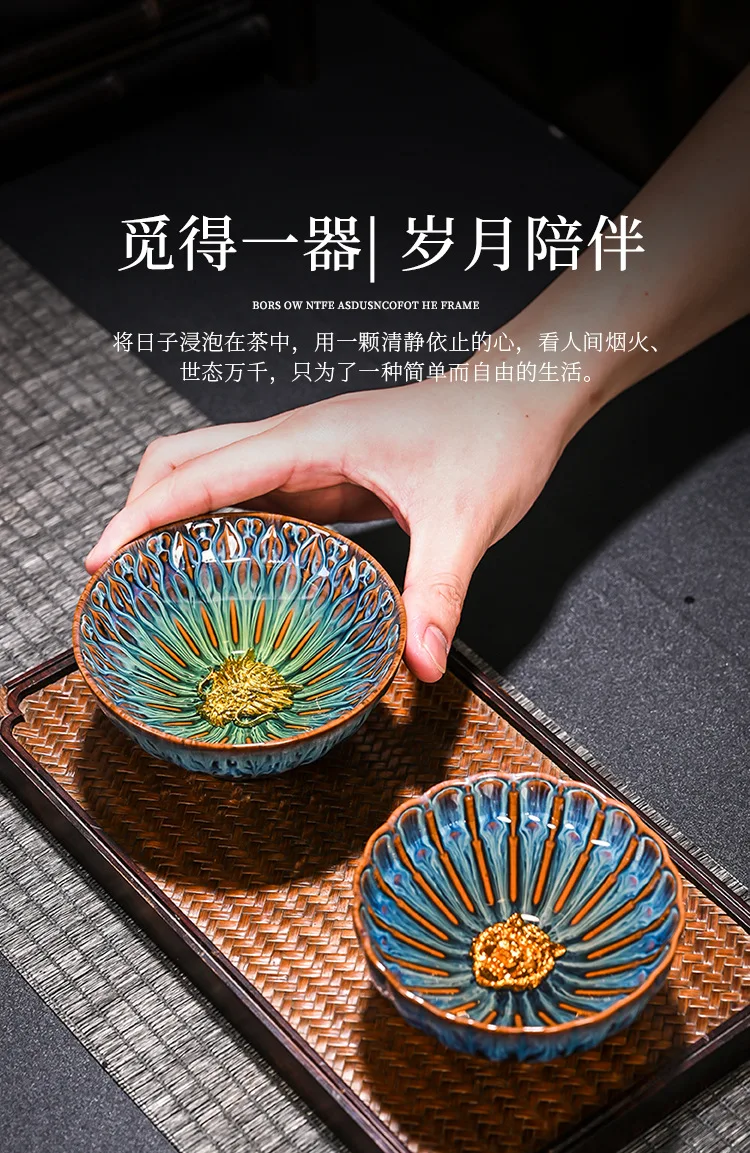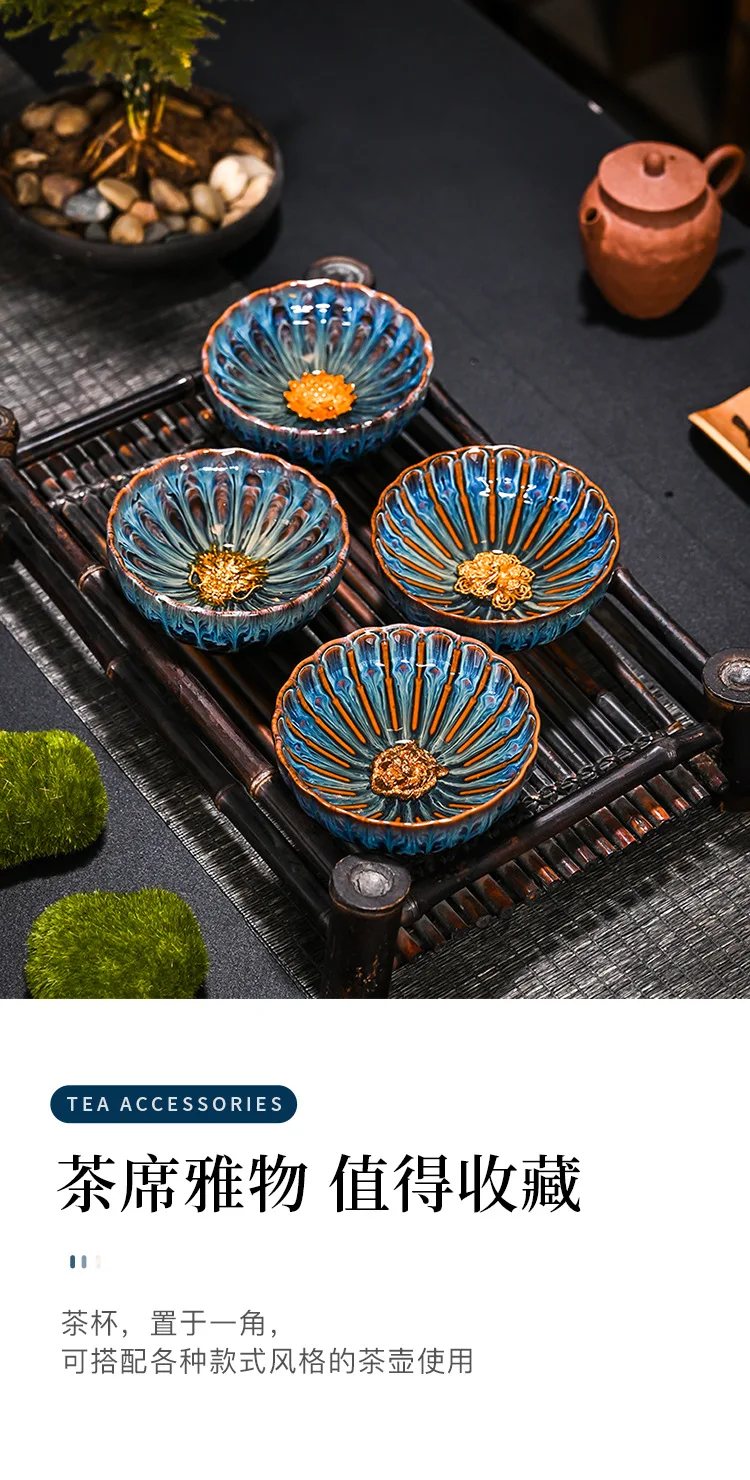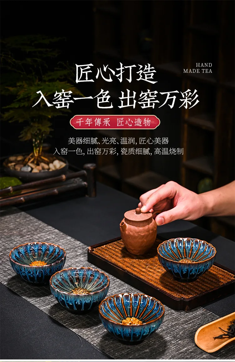 Chinese Style Kiln Master Cup Ceramic Petals Tea Cup Tea Set Tea Cup Single Tea Bowl Family Kungfu Tea Cup