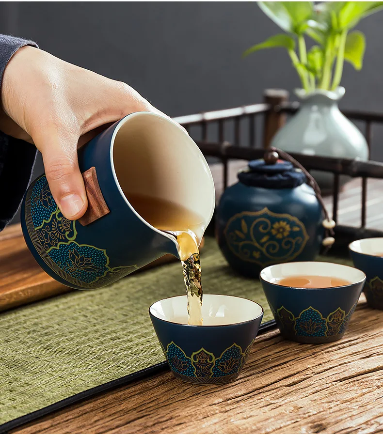 Chinese style Portable Ceramic tea set One pot and three cups Travel tea set Make a teapot with you teacup Gift tea sets