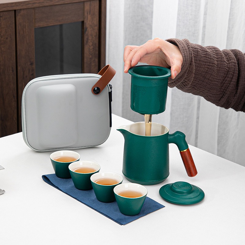 Chinese Style Travel Tea Set with Carrying Bag Ceramic Glaze Teapot 1 Pot 4 Cups Outdoor Camping Teapot Kung Fu Tea Cup Set