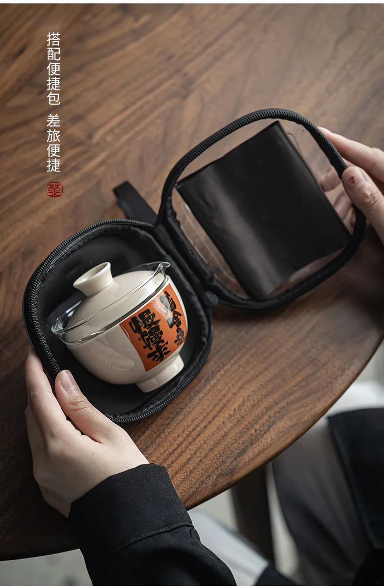 Chinese Tea Pot and Cups Set Portable Teapot Teacup Set with Travel Kit Gongfu Teaware Ceramic Outdoor Tea Bowl Cup Set