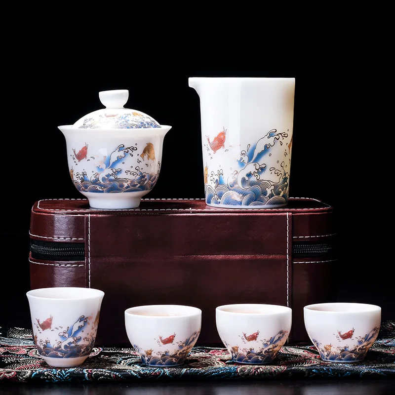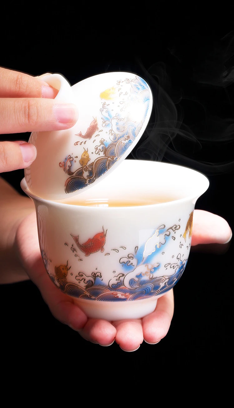 Chinese Tea Set Ceramic Suet jade Teapot Teacup Gaiwan Porcelain Teaset Kettles Teaware Sets Drinkware Chinese Tea Free Shipping