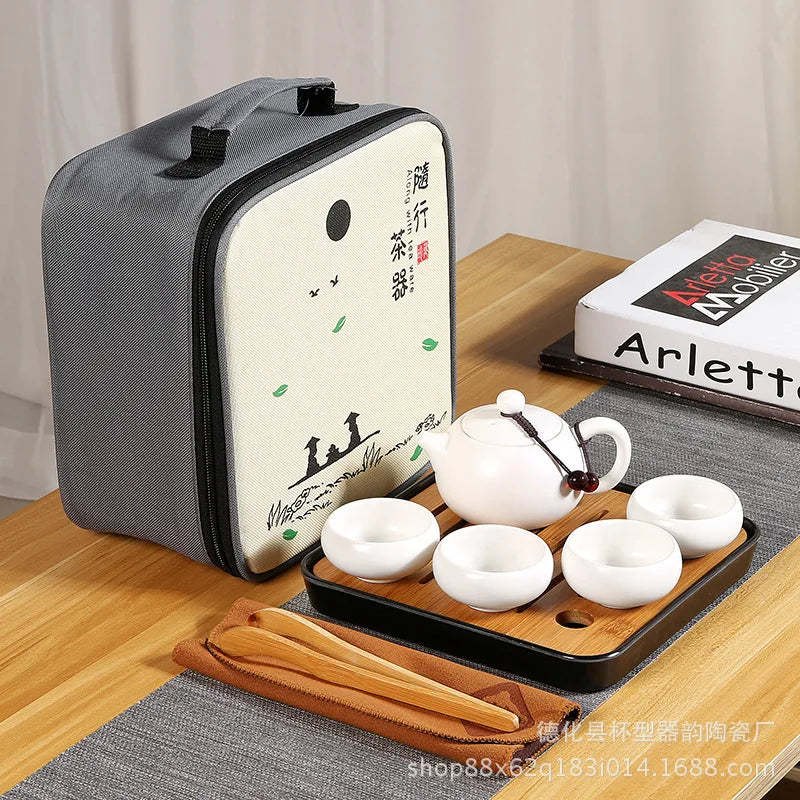 Chinese Tea Set Portable Travel Kung Fu Tea Set Ceramic Teapot Teaset Gaiwan Tea Cup Tea Pot &Travel Bag Tea Caddy Coffee Pot