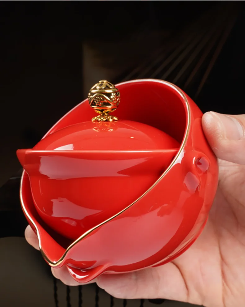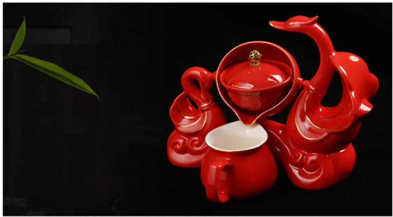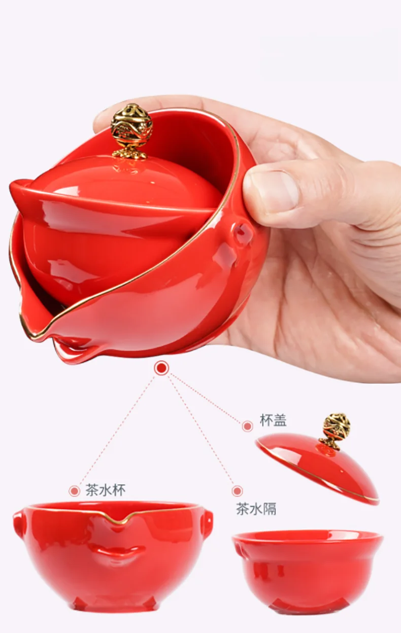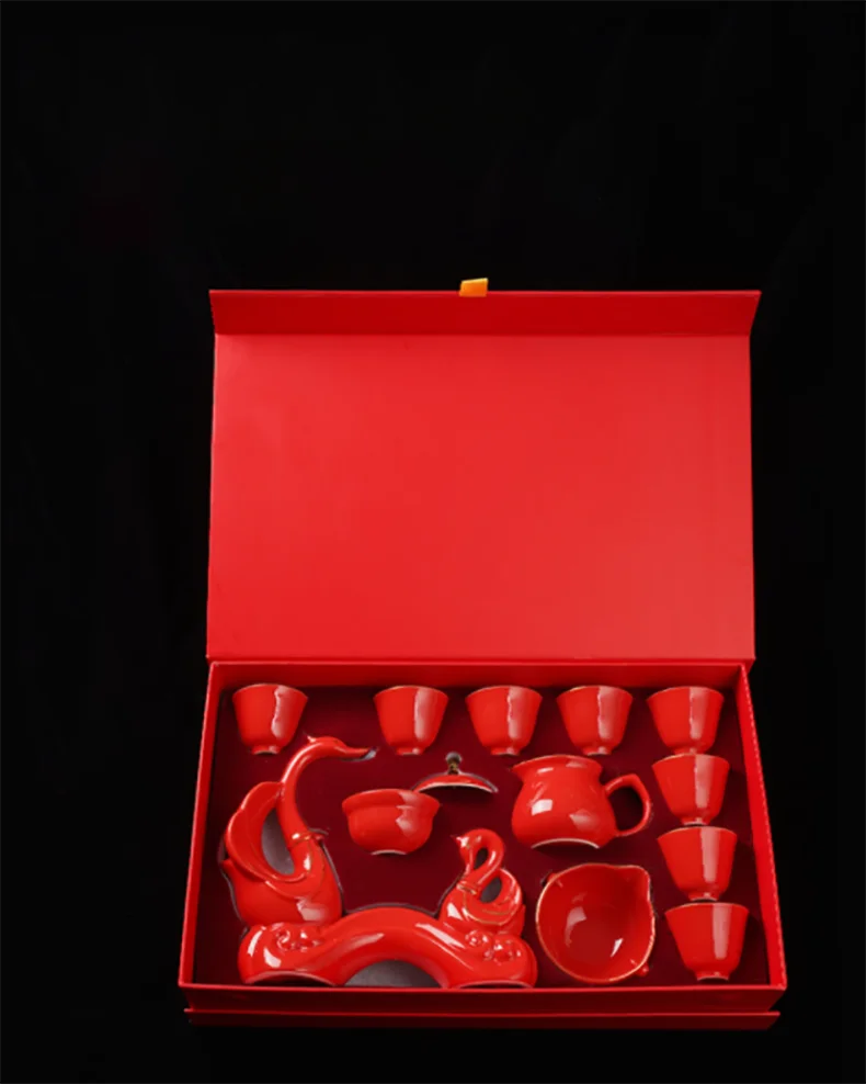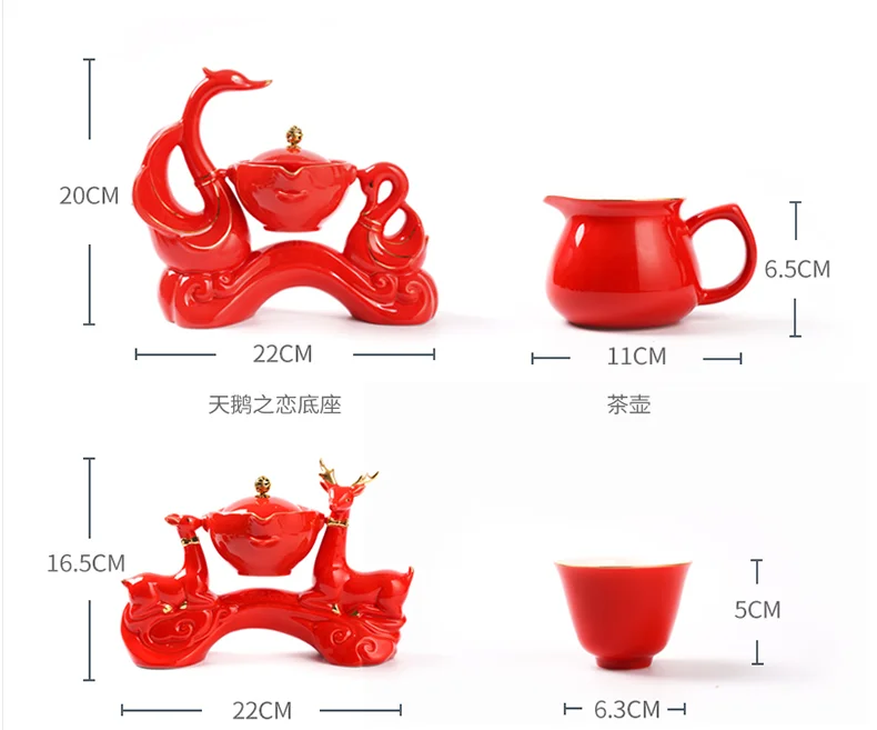Chinese Traditional Red Wedding Automatic Kung Fu Tea Set Semi-automatic Office Tea Set Creative Lazy Ceramic Teapot Cup Teaware
