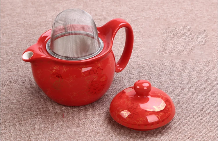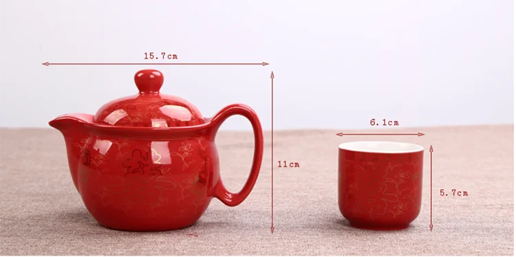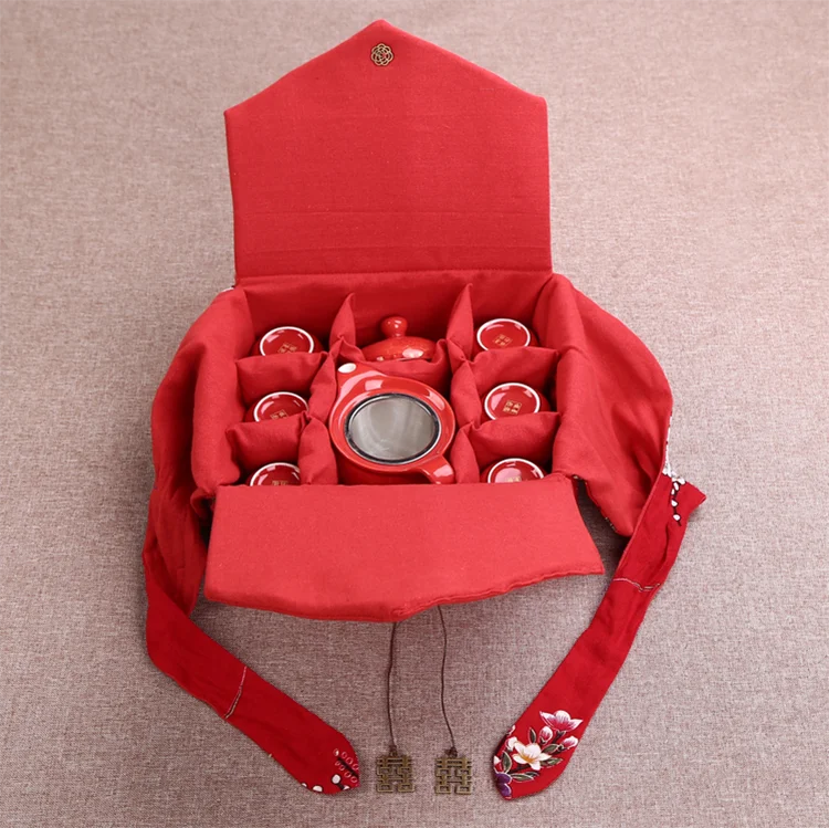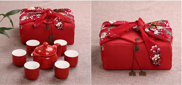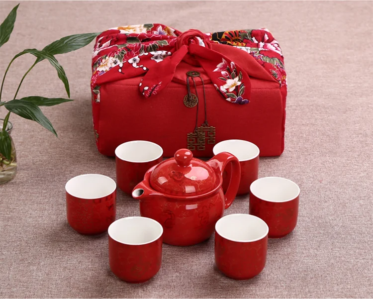 Chinese Traditional Wedding Ceramic Tea Set Retro Red Double Happiness Teapot Cup Newlywed Souvenir Gift Wedding Supplies