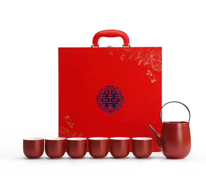 Chinese Traditional Wedding Ceramic Tea Set Teaware Kettle Retro Porcelain Teapot Tea Cup Newlywed Souvenir Gift Party Supplies