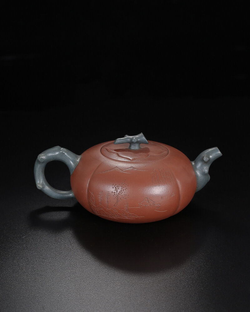 Chinese Yixing Zisha Clay Handmade Exquisite Teapot(柿扁 底款:花章)