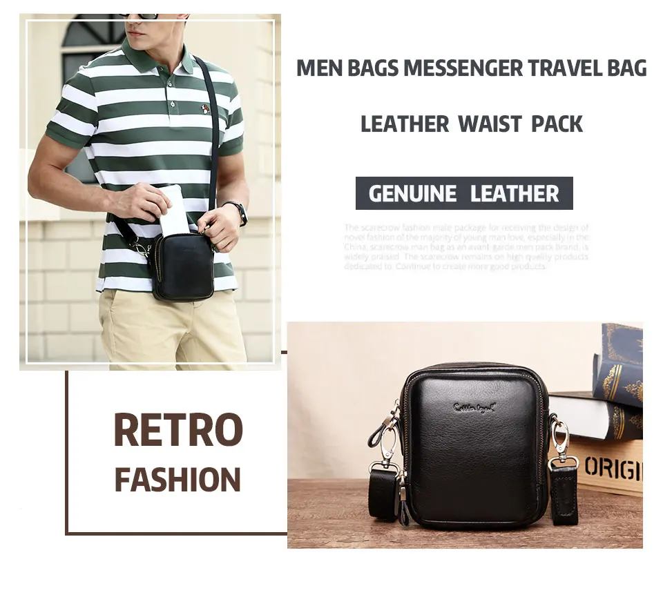 Cobbler Legend Genuine Leather Bag Men Bags Messenger Black Men's Travel Bag Crossbody Bags Leather Shoulder Handbags Waist Pack